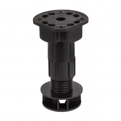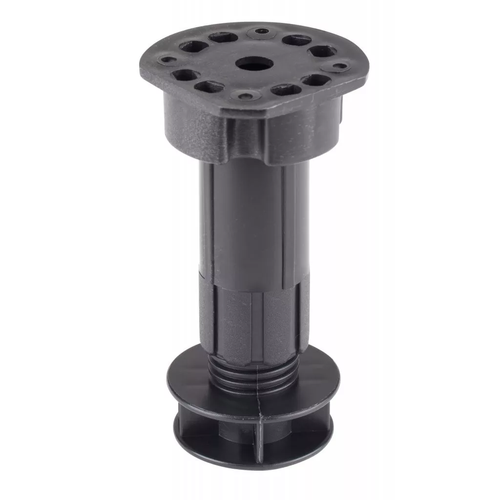 Műanyag lábazati láb 200 kg teherbírással, 100-120 mm között állítható magassággal, fekete kivitelben, szorítókkal együtt. Konyhaszekrényekhez alkalmas. A csomag 4 db-ot tartalmaz.