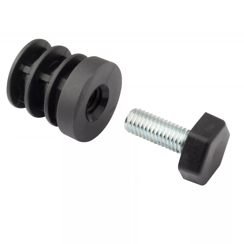 Kerek műanyag dugó fekete színben, 25 mm külső átmérővel, M8 menetes csavarral és 20 mm hosszúsággal. Ezzel a dugóval például bútorszékek lábainak profilját zárhatja le, majd a csavarral beállíthatja a magasságot és kiegyenlítheti az egyenetlen padlót. A csomag 1 db dugót tartalmaz.