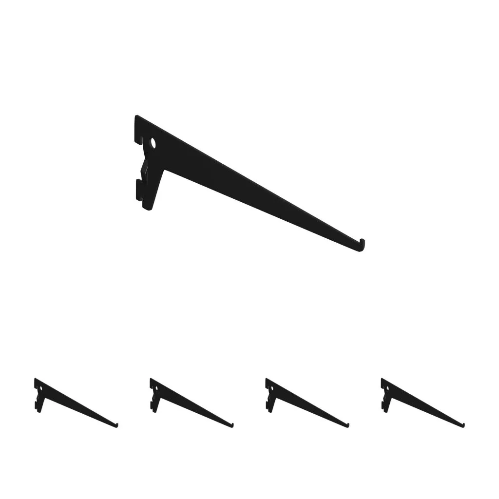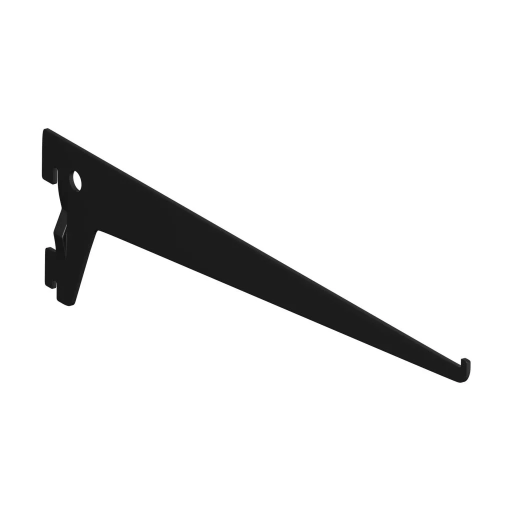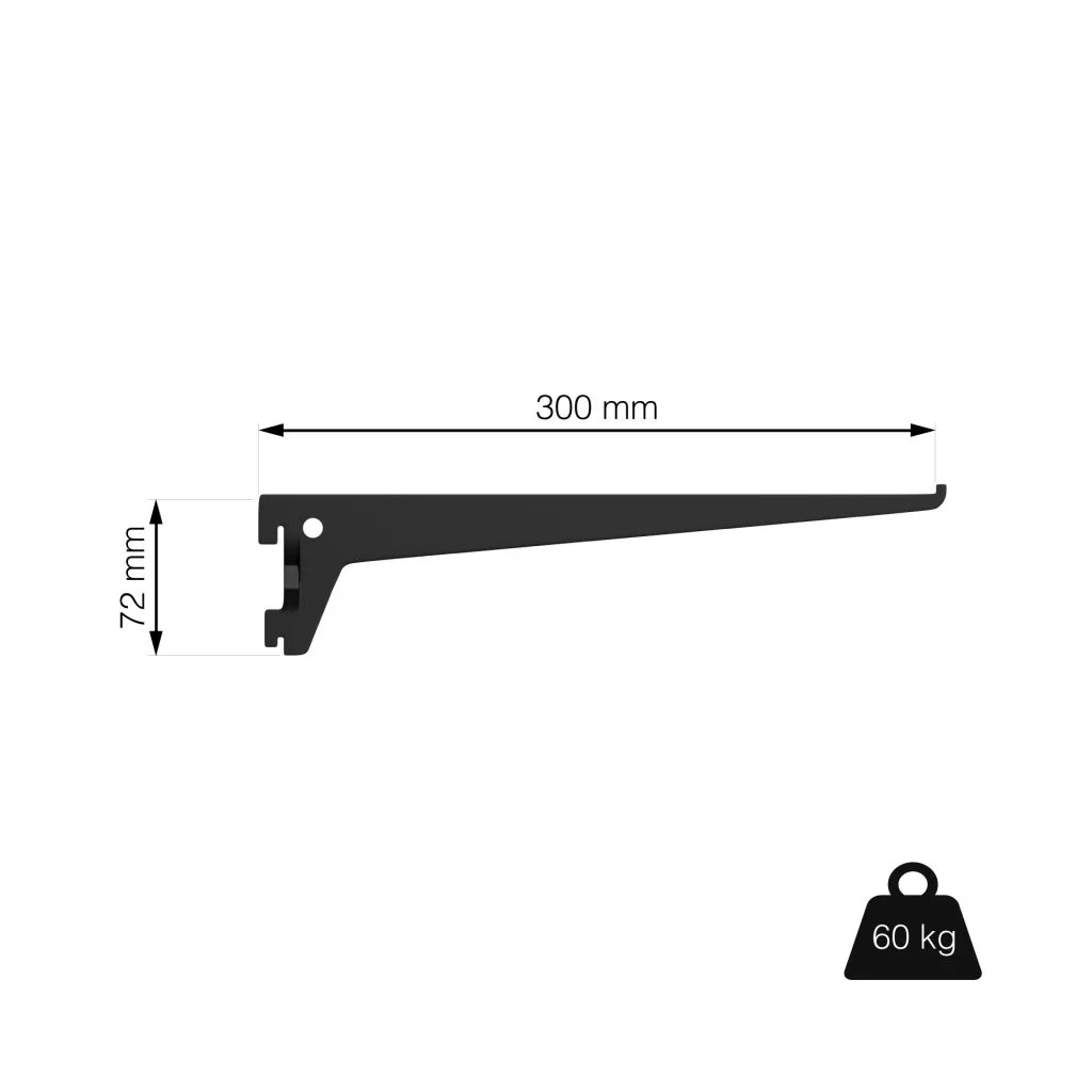 Matt fekete színű fém gerenda, 300 mm mély és 72 mm magas polcokhoz tervezve.