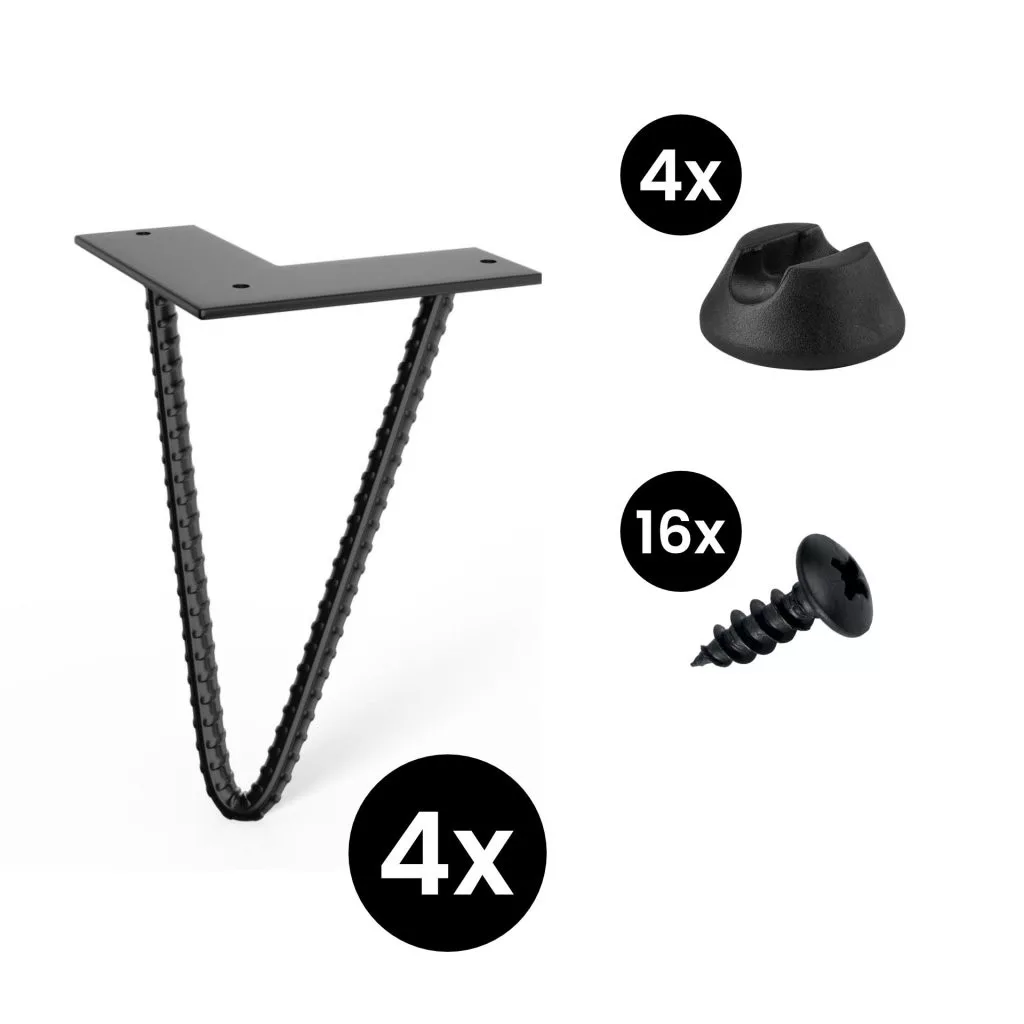 4 darabos Roxor II hajtűláb készlet 200 mm ferde fekete alátétekkel és csavarokkal