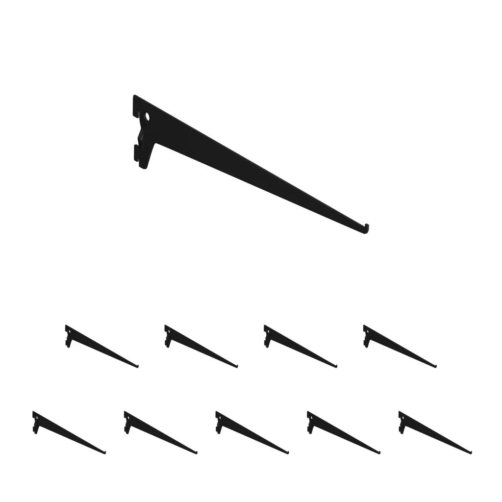 Matt fekete színű fém gerenda, 400 mm mély és 72 mm magas polcokhoz tervezve.