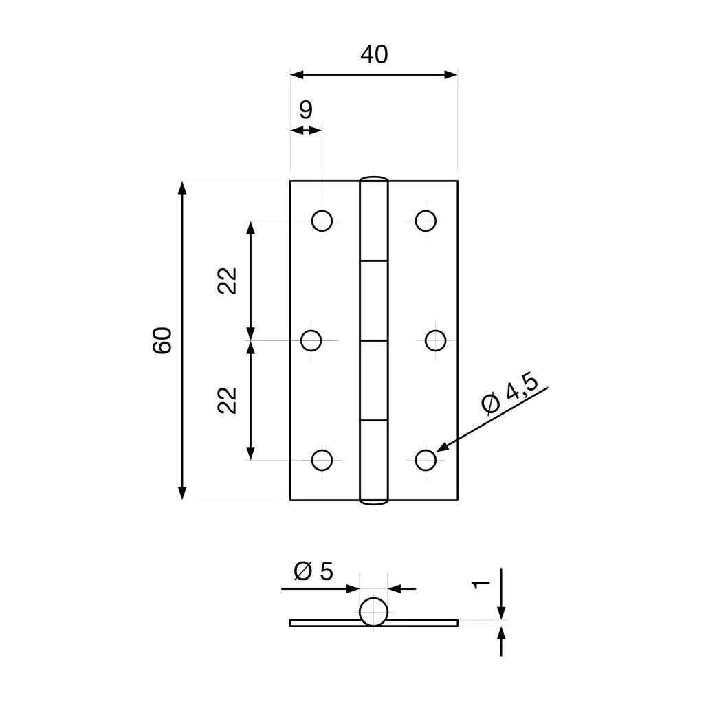 40x60 mm méretű rozsdamentes acél zsanér különféle ajtók, bútorok/dobozajtók rögzítéséhez műhelyben, kertben vagy nyaralóban.