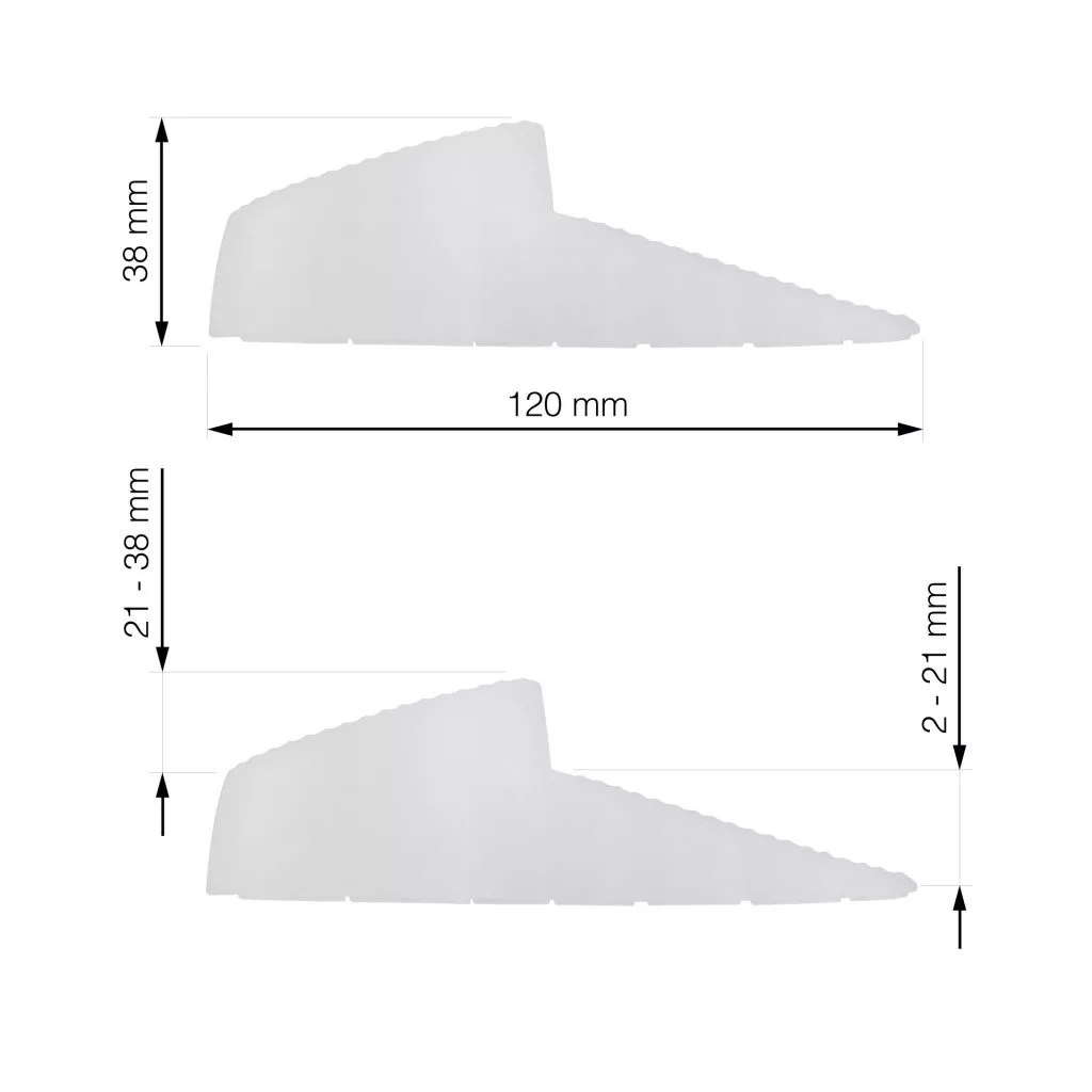 Többcélú, átlátszó ajtó- és ablakütköző 120 mm szélességgel és 21-38 mm/2-21 mm magassággal. Erős huzat esetén is rögzíti az ablakokat, ajtókat és erkélyajtókat. A zár beltéren és kültéren is használható, bármilyen felületen tart.