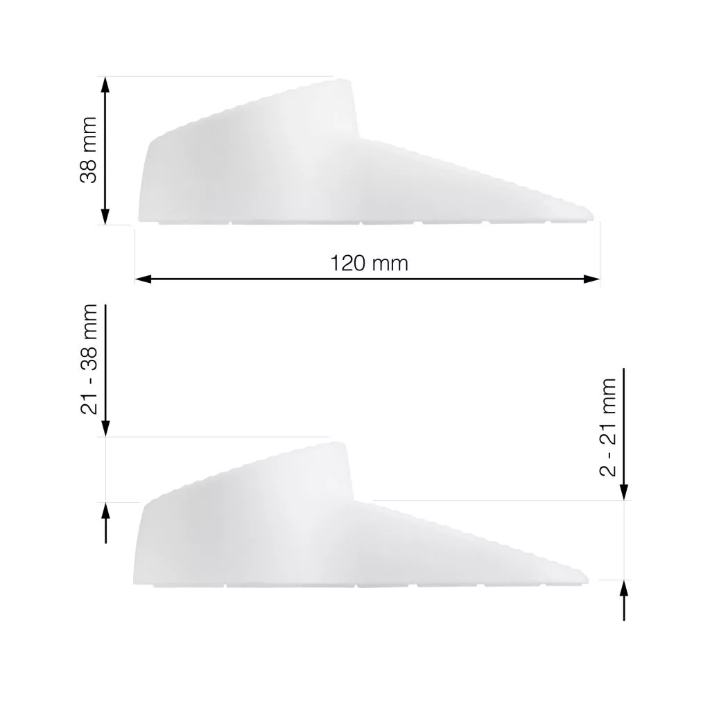 Többcélú ajtó- és ablakütköző fehér színben, 120 mm szélességgel és 21-38 mm/2-21 mm magassággal. Erős huzat esetén is rögzíti az ablakokat, ajtókat és erkélyajtókat. A zár beltéren és kültéren is használható, bármilyen felületen tart.