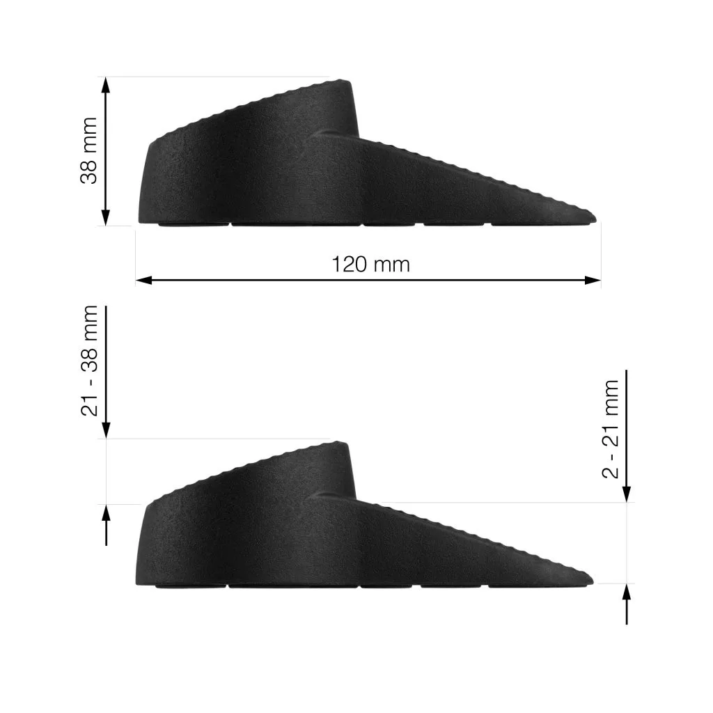 Többcélú ajtó- és ablakütköző fekete színben, 120 mm szélességgel és 21-38 mm/2-21 mm magassággal. Erős huzat esetén is rögzíti az ablakokat, ajtókat és erkélyajtókat. A zár beltéren és kültéren is használható, bármilyen felületen tart.