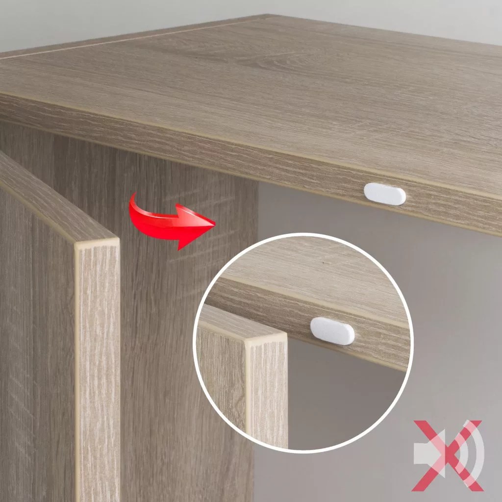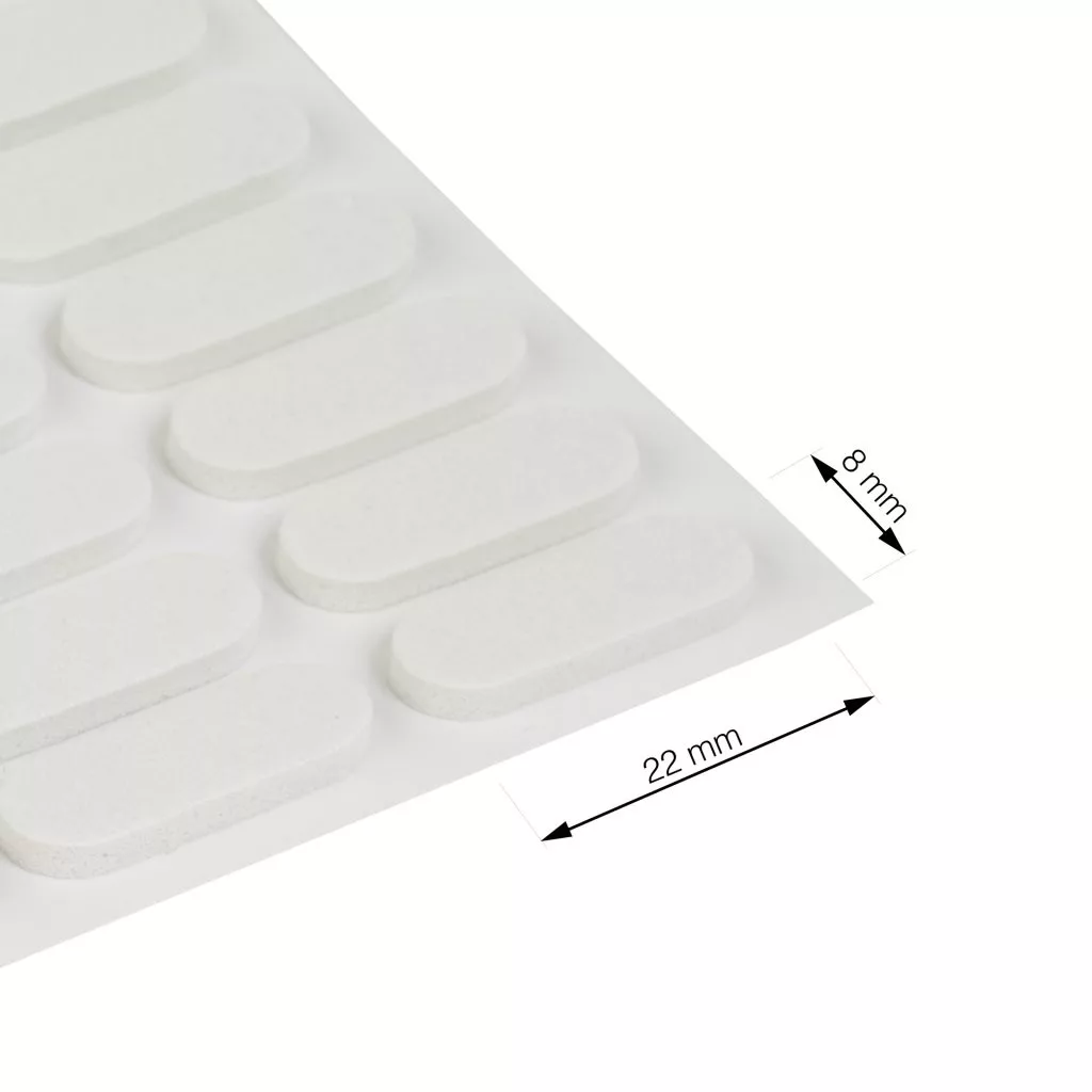 Öntapadós lengéscsillapító fehér kivitelben, 22 mm széles és 8 mm mély. A diszkrét lengéscsillapító ajtókhoz és fiókokhoz megakadályozza a hirtelen záródást és ütéseket. A csomag 30 darabot tartalmaz.