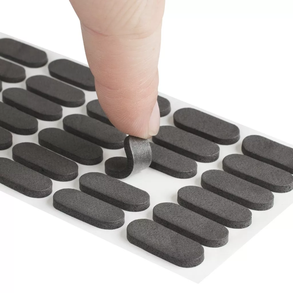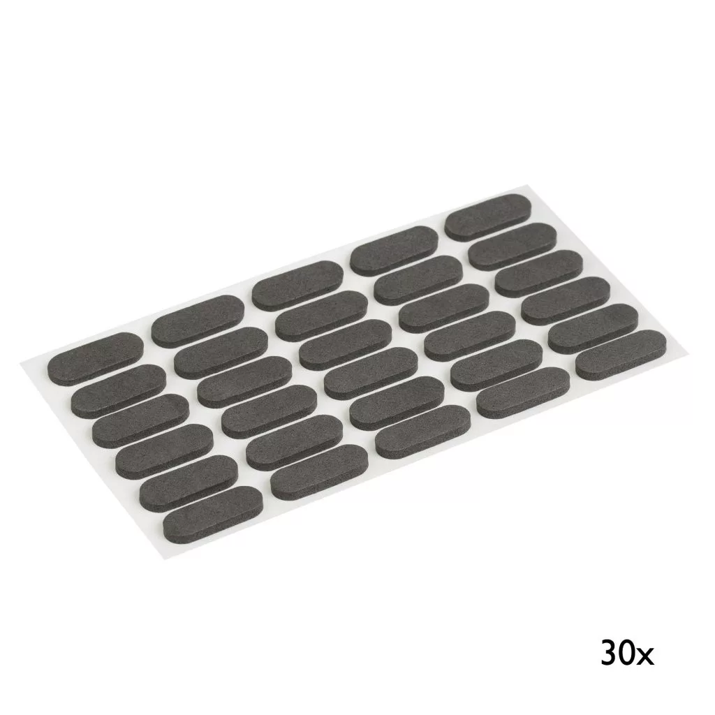 Öntapadós lengéscsillapító fekete kivitelben, 22 mm széles és 8 mm mély. A diszkrét lengéscsillapító ajtókhoz és fiókokhoz megakadályozza a hirtelen záródást és ütéseket. A csomag 30 darabot tartalmaz.
