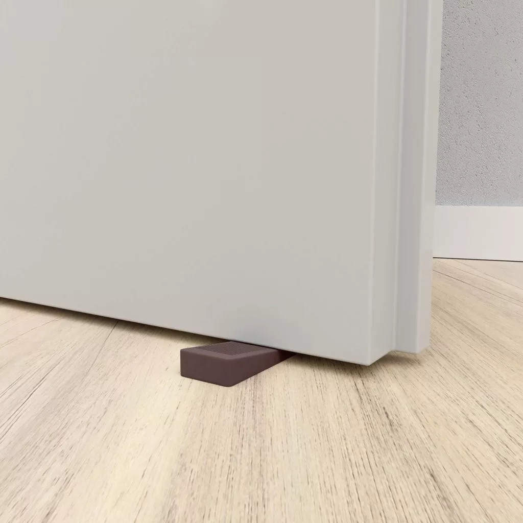 Műanyag ajtóék barna kivitelben, 50 mm széles és 19 mm magas. Ajtók bármilyen helyzetben történő zárására szolgál. Minden padlótípusra alkalmas. A csomag 4 darabot tartalmaz.