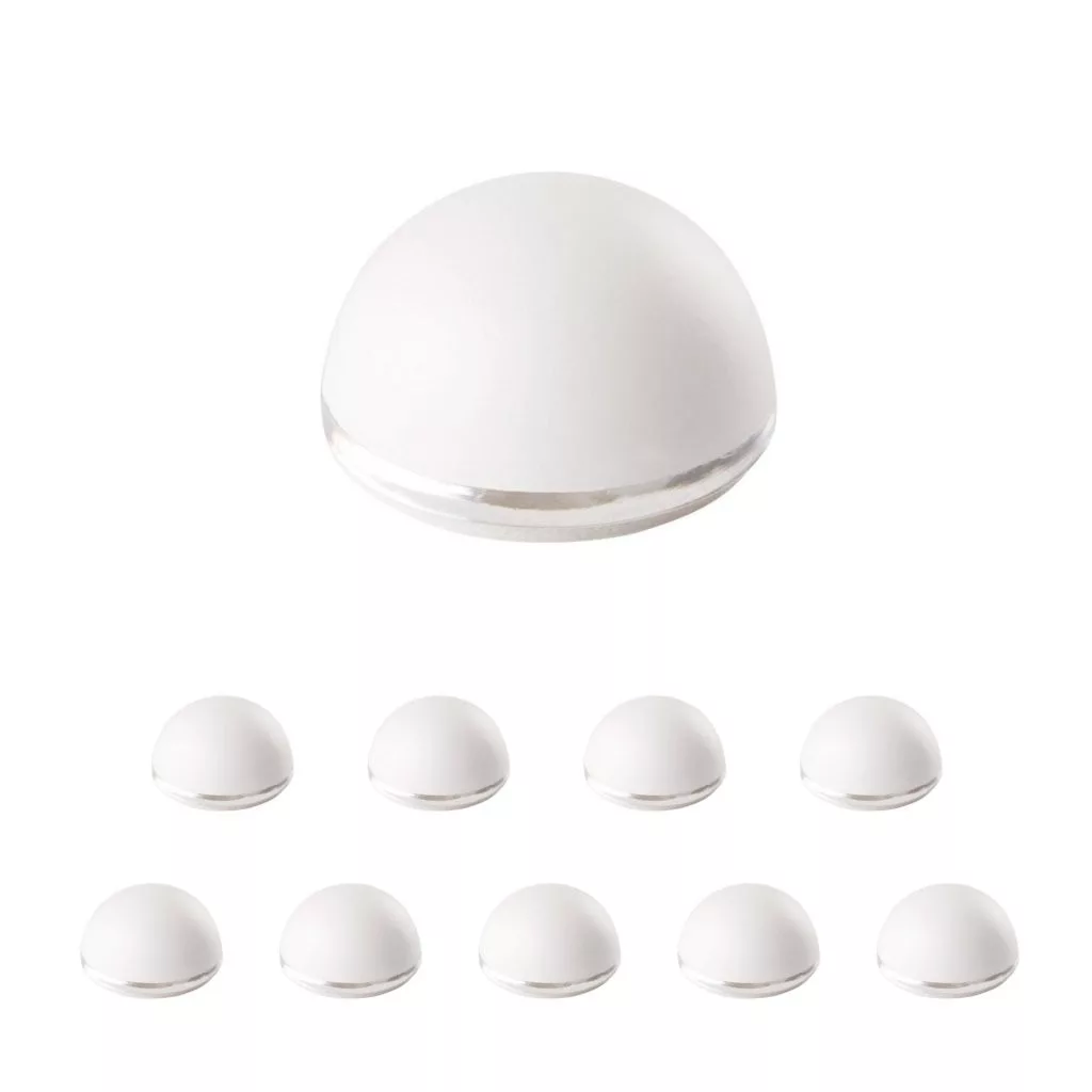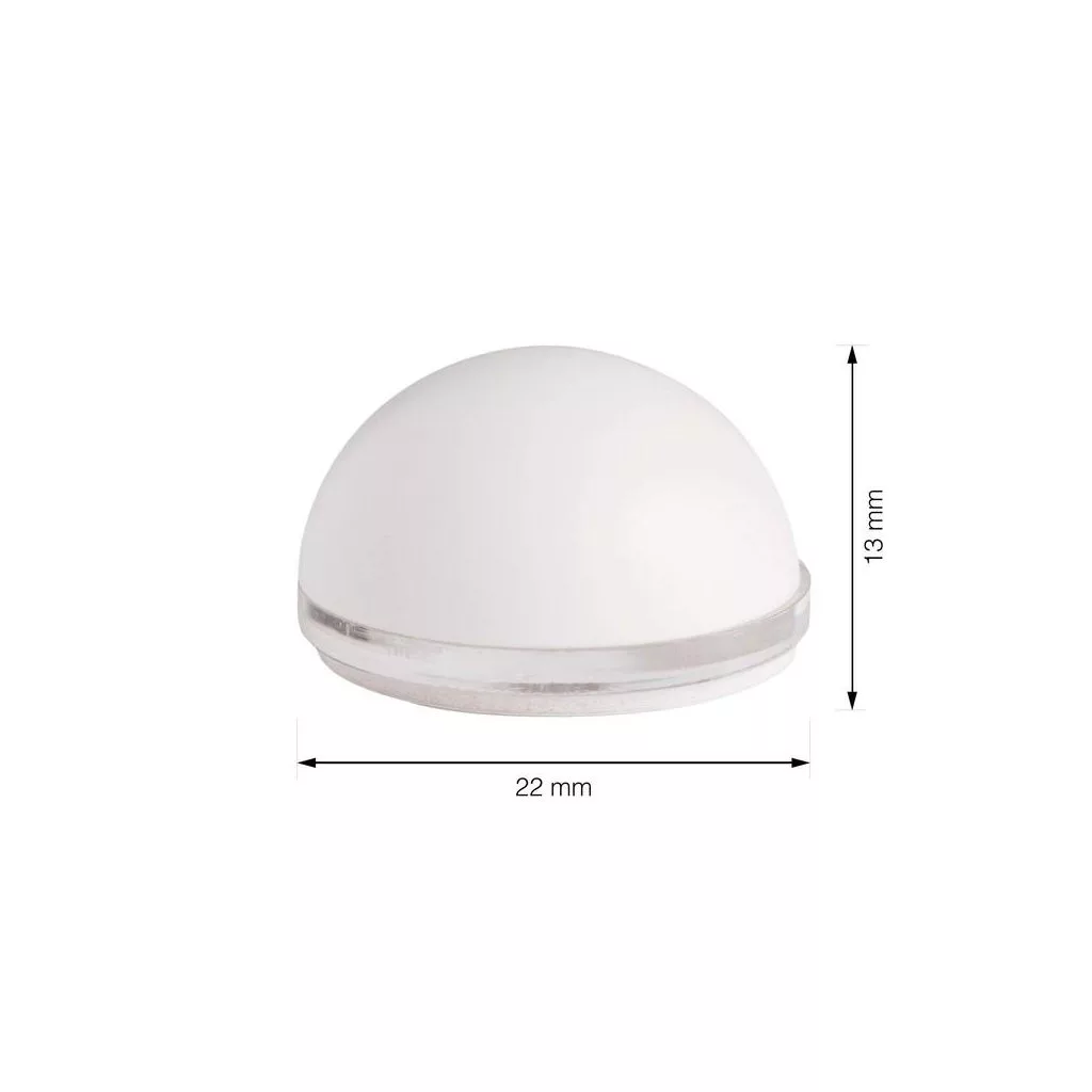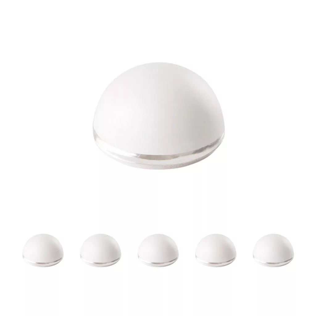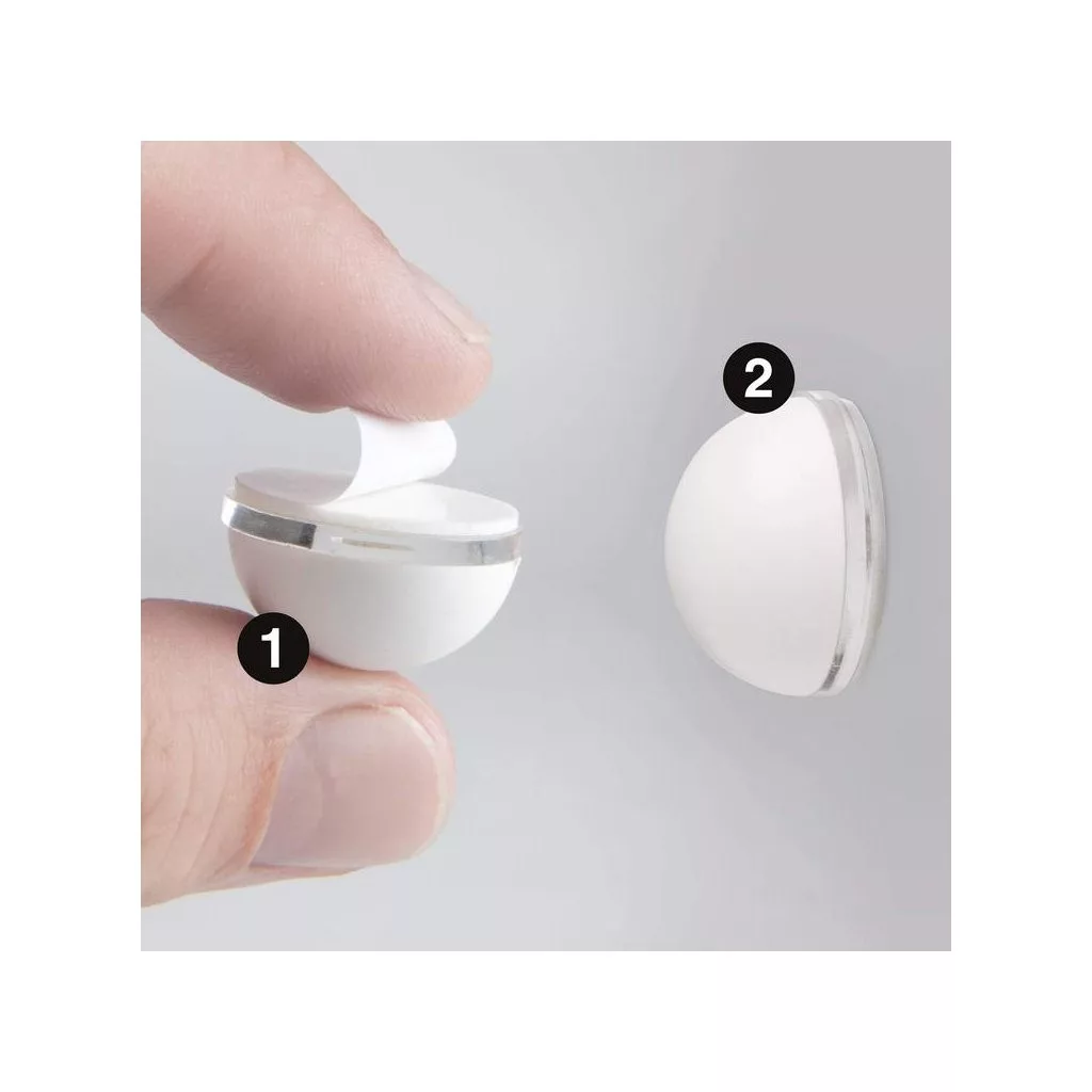 22 mm átmérőjű és 15 mm magas, fehér színű műanyag ajtóütköző. A falra a fogantyú magasságában ragasztható.