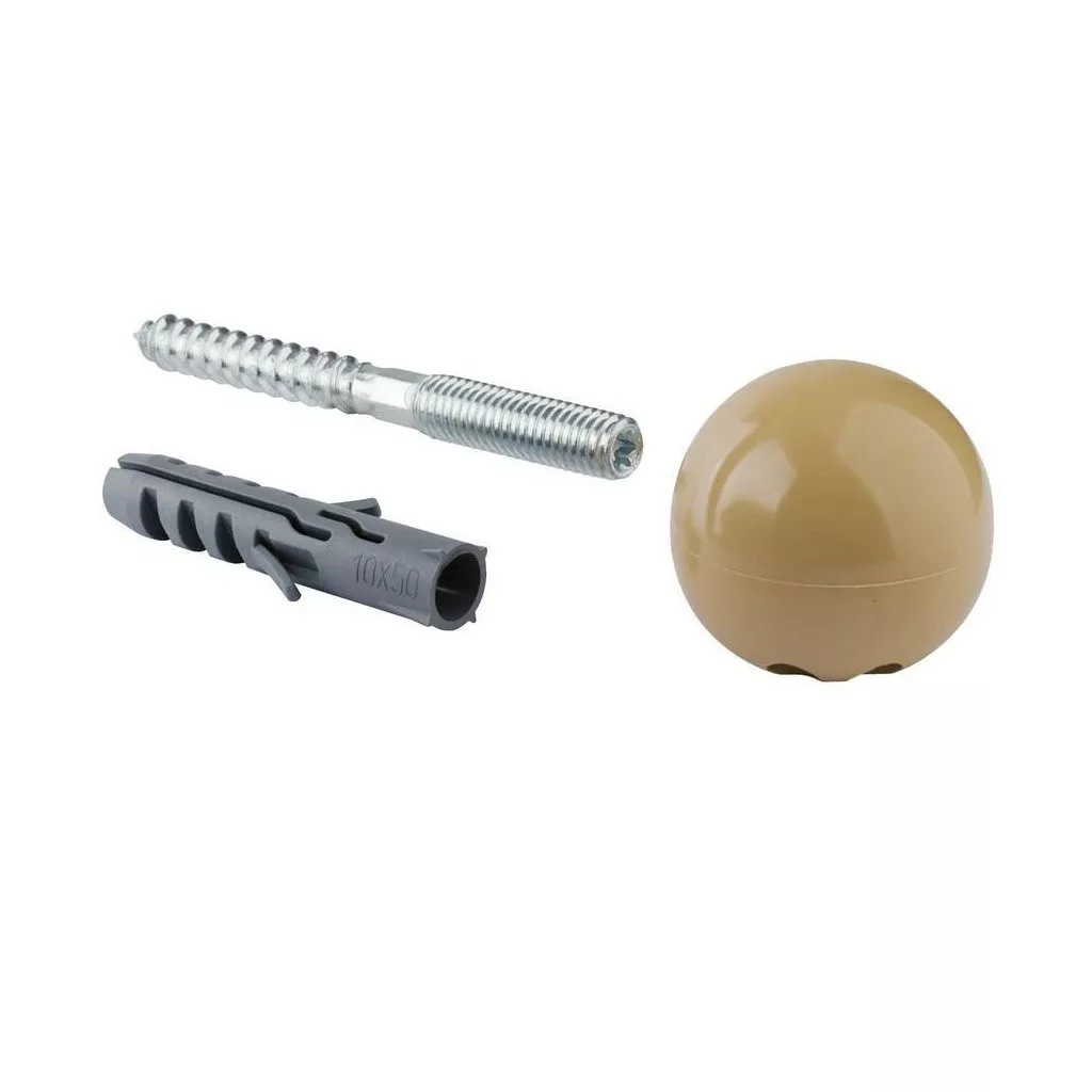 Bézs színű, kerek ajtóütköző, 35 mm átmérővel. Védi a falakat és a bútorokat az ajtó ütődéseitől. Minden padlótípusra csavarozható. Rögzítőanyaggal együtt.