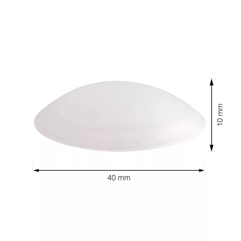 40 mm átmérőjű és 10 mm magas átlátszó ajtóütköző. A falra a fogantyú magasságában ragasztható. Védi a falat az ütésektől.