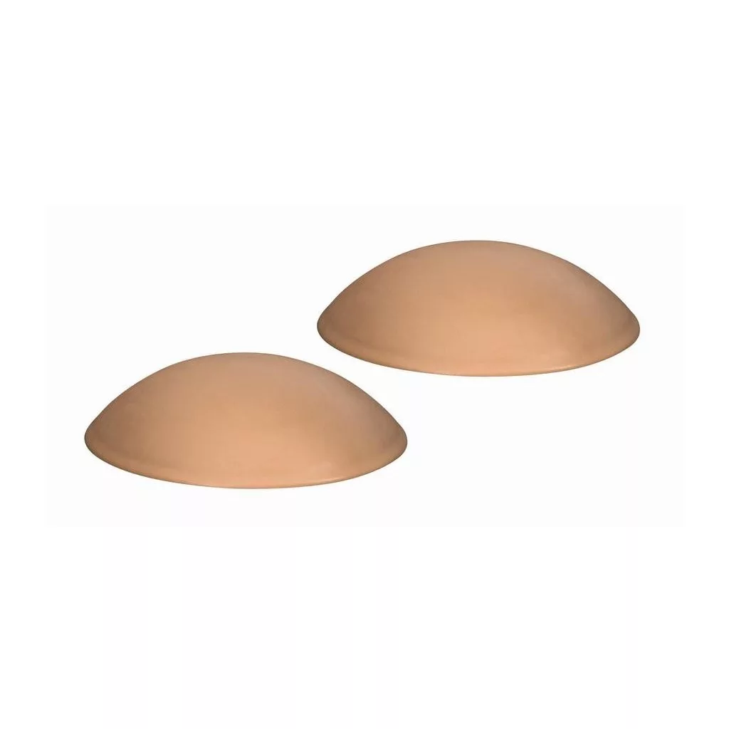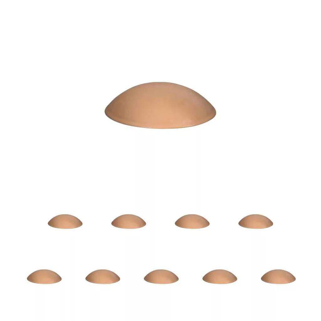 Bézs színű műanyag ajtóütköző, 40 mm átmérővel és 10 mm magassággal. Alkalmas falra ragasztásra, a fogantyú magasságában.