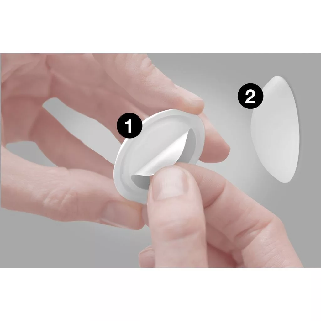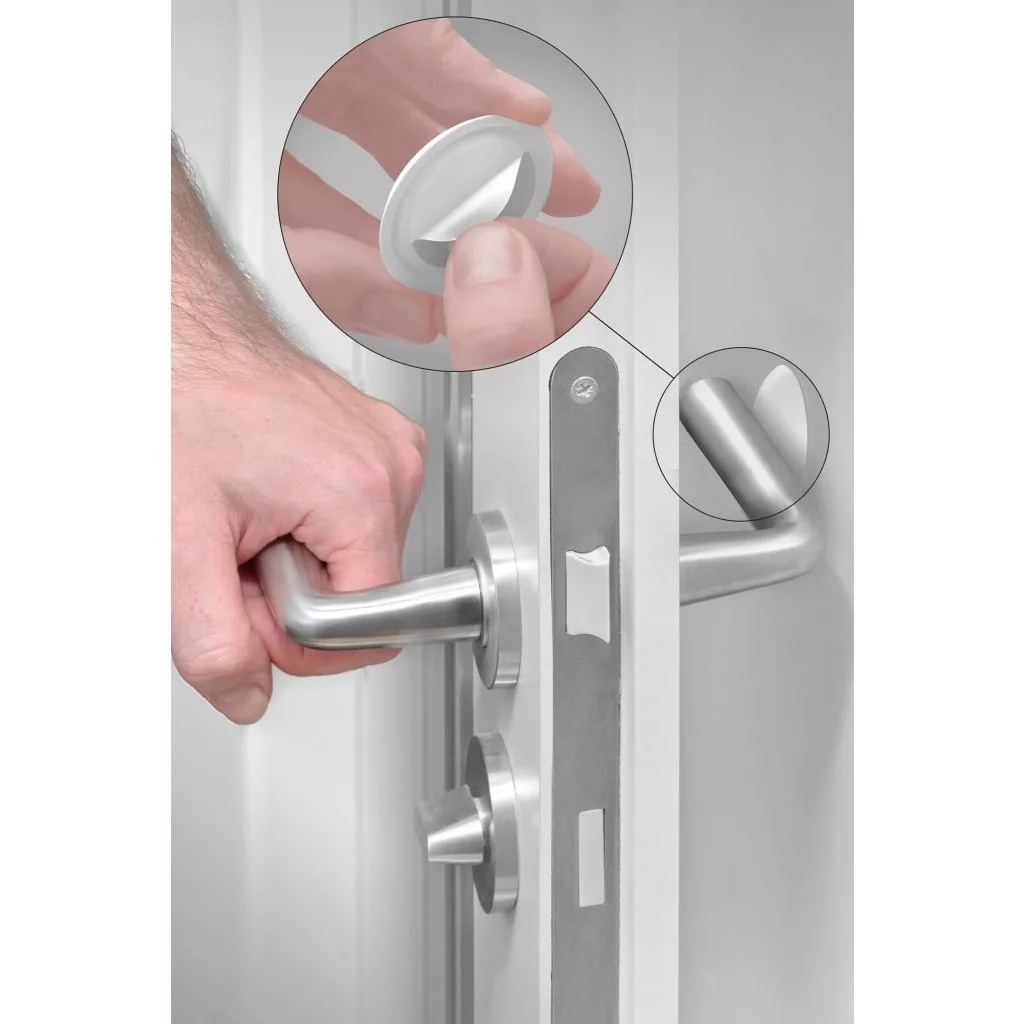 40 mm átmérőjű és 10 mm magas, fehér színű műanyag ajtóütköző. A falra a fogantyú magasságában ragasztható.