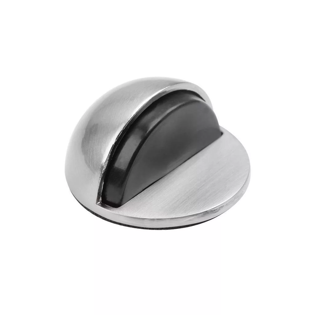 Matt nikkel bevonatú fém ajtóütköző, 45 mm átmérővel és 25 mm magassággal. Védi a falakat és a bútorokat az ajtó ütődéseitől. Minden sima padlótípusra ragasztható.