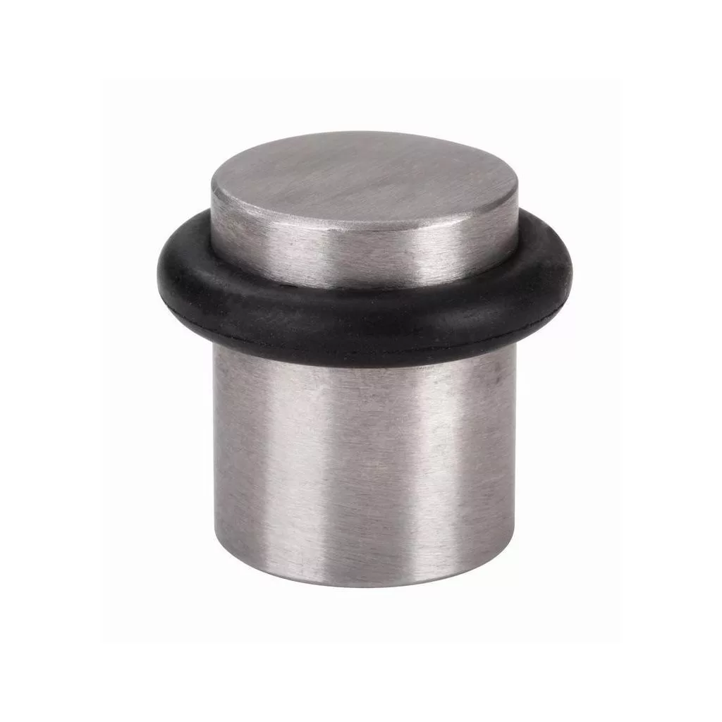 27 mm átmérőjű és 25 mm magas rozsdamentes acél ajtóütköző (gumihüvellyel együtt). Védi a falakat és a bútorokat az ajtó ütődéseitől. Minden padlótípusra csavarozható. Rögzítőanyaggal együtt.