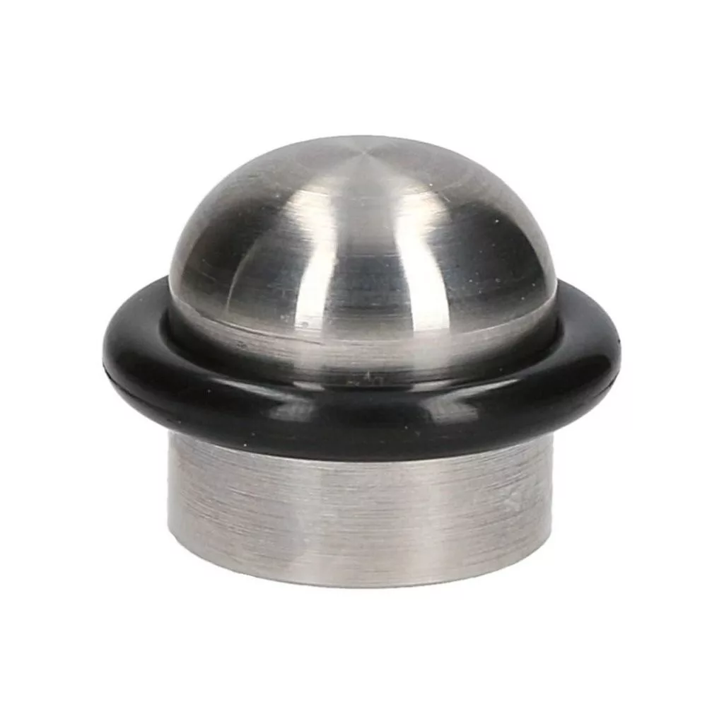 33 mm átmérőjű és 25 mm magas rozsdamentes acél ajtóütköző (gumihüvellyel együtt). Védi a falakat és a bútorokat az ajtó ütődéseitől. Minden padlótípusra csavarozható. Rögzítőanyaggal együtt.
