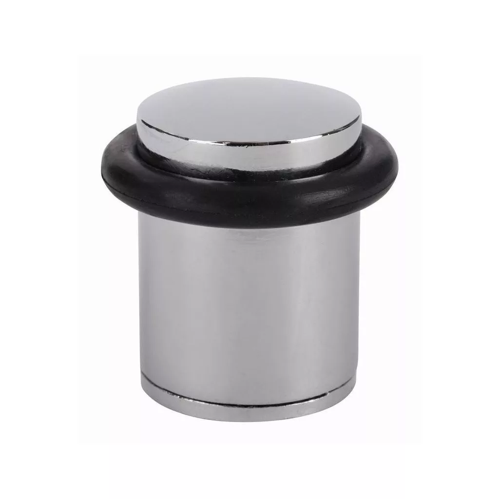 Krómozott fém ajtóütköző, 35 mm átmérővel és 39 mm magassággal (gumihüvellyel együtt). Védi a falakat és a bútorokat az ajtó ütődéseitől. Minden padlótípusra csavarozható. Rögzítési anyaggal együtt.