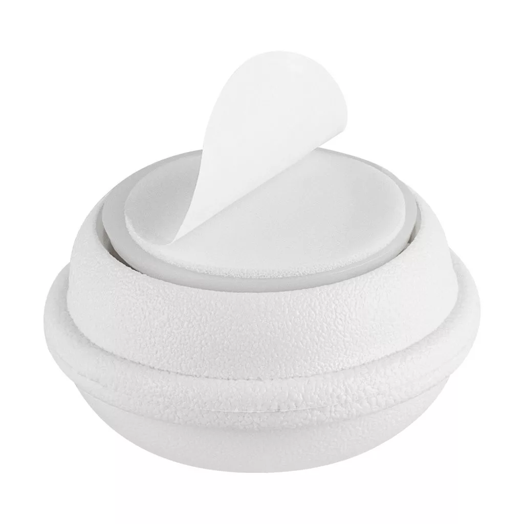 Fehér macaron ajtóütköző, 34,5 mm átmérőjű és 19,5 mm magas. Védi a falakat és a bútorokat az ajtó ütődéseitől. Minden sima padlóra ragasztható. A csomag 2 db-ot tartalmaz.