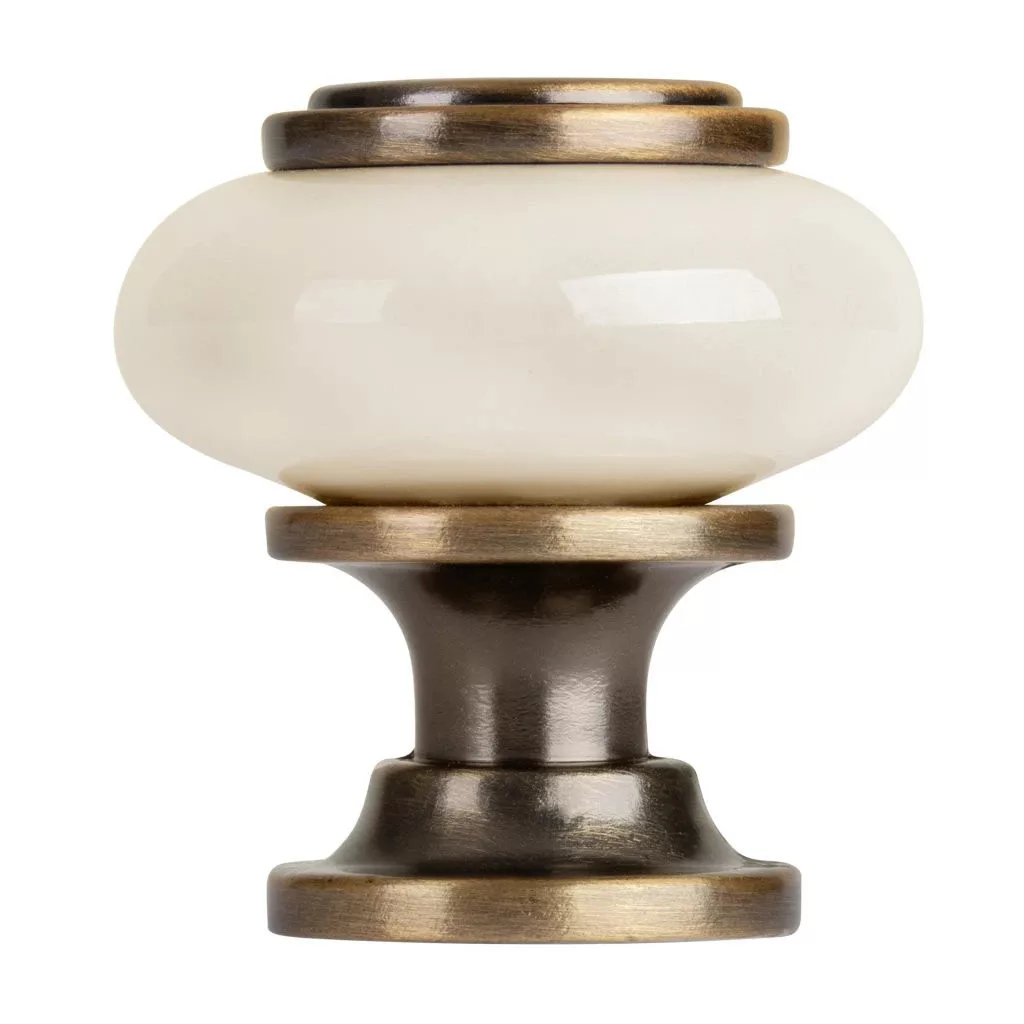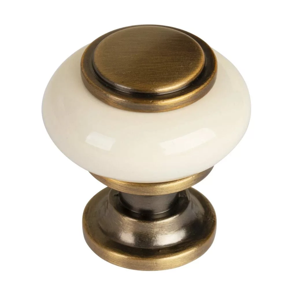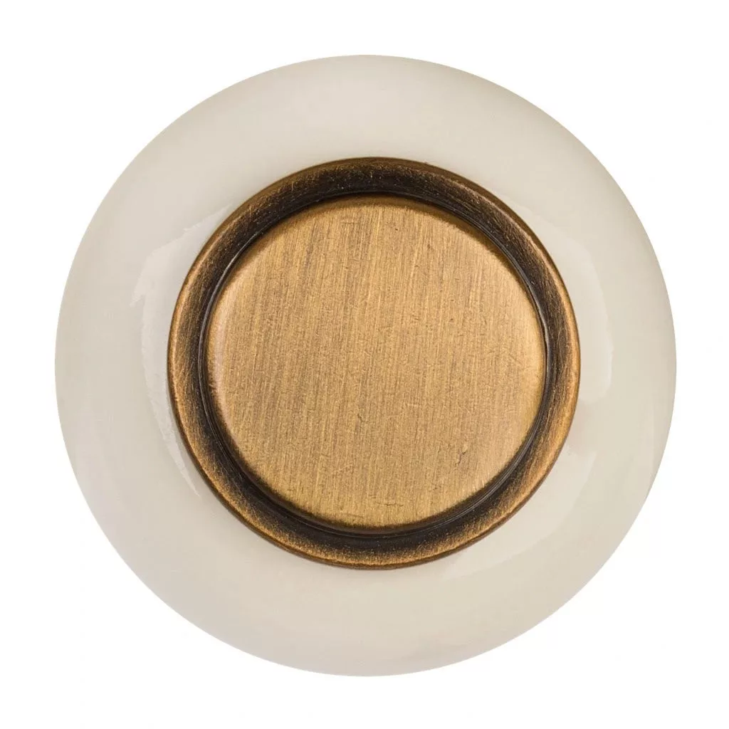 4 darabos rusztikus Alta bútorgombkészlet porcelánból és bronzból, 31 mm átmérőjű és 32 mm magas. Rögzítőcsavarok mellékelve.