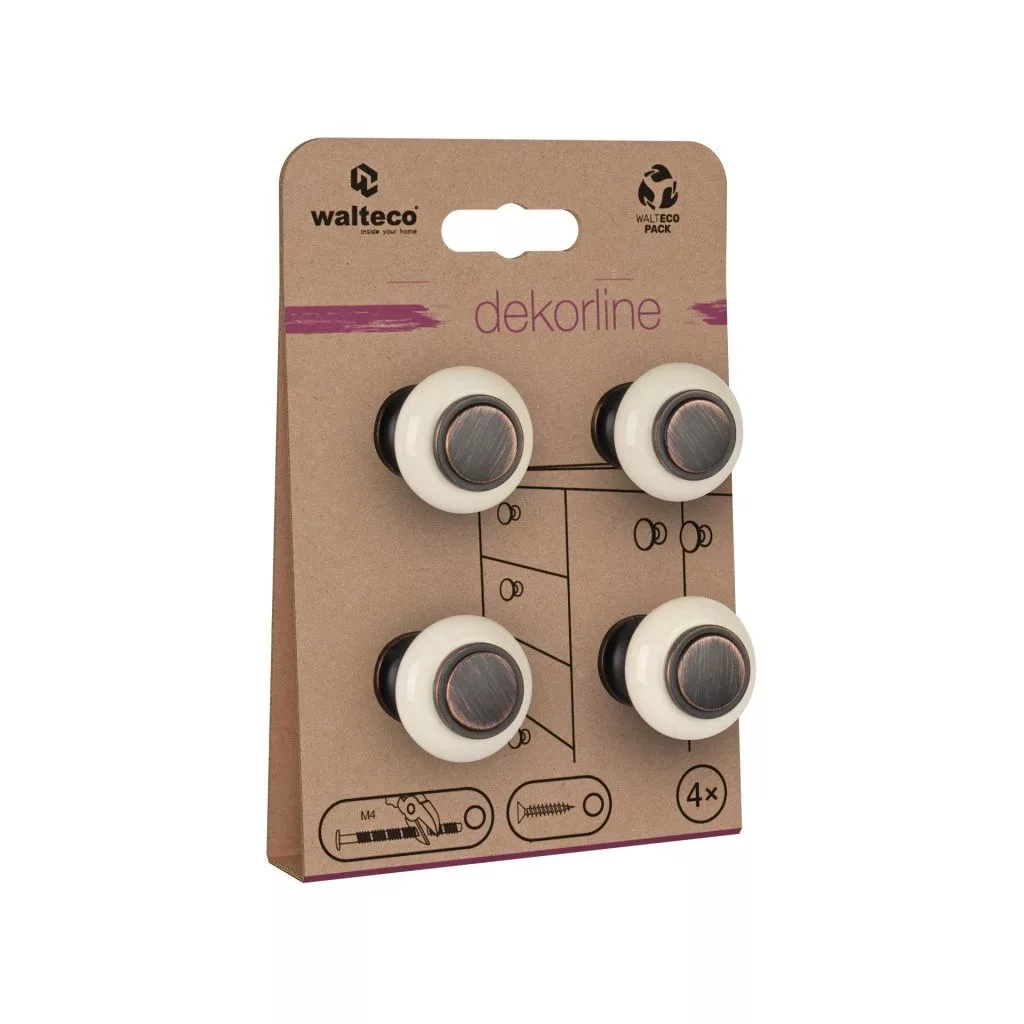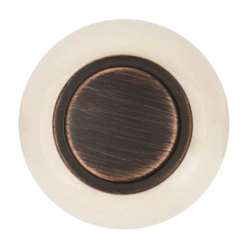 4 darabos rusztikus Alta bútorgombkészlet porcelán és antik réz kivitelben, 31 mm átmérőjű és 32 mm magas. Rögzítőcsavarok mellékelve.