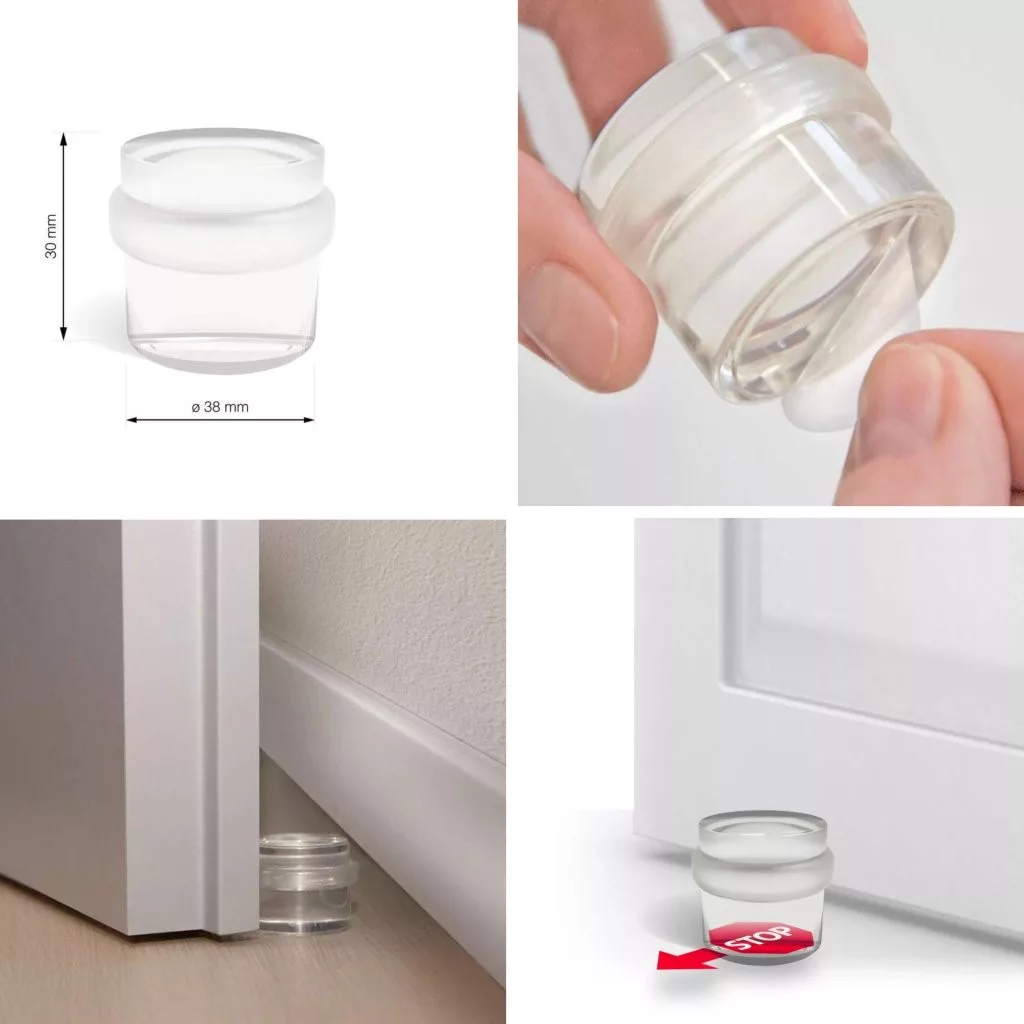 6 darabos átlátszó ütköző és lengéscsillapító készlet falak és bútorok védelmére. Tartalmaz 3 szekrényütközőt, 2 padlóütközőt és 1 többcélú éket. Diszkrét, sokoldalú és minden otthonba ideális.