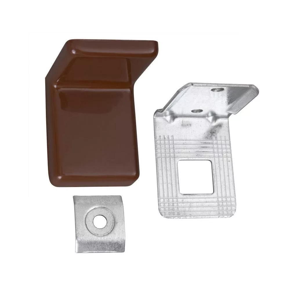 BYSTRICA márkájú fém egyenirányító szerelvények, barna műanyag borítással, szélessége 39 mm, magassága 49 mm, teherbírása 40 kg. A csomag 2 db-ot tartalmaz.