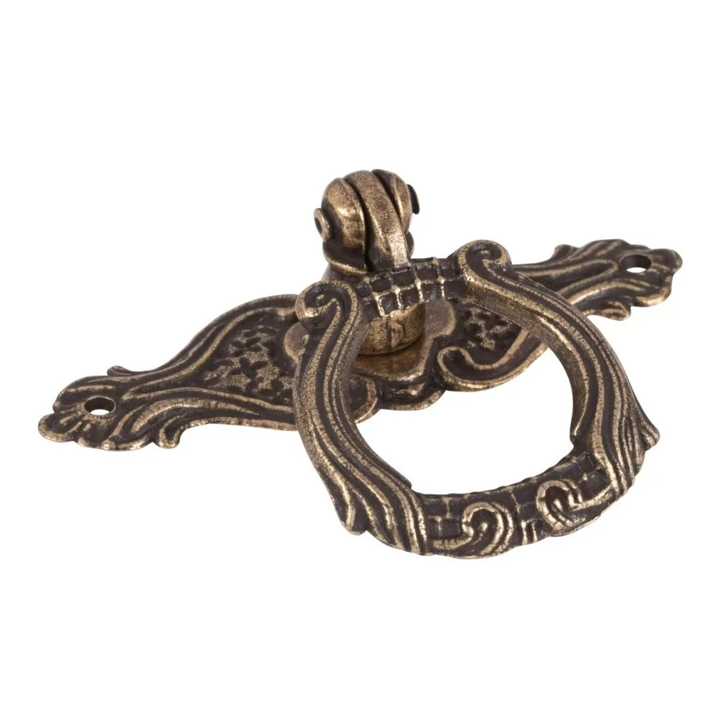 Rusztikus Barrit bútorgomb antik sárgaréz kivitelben, 67 mm hosszú, 53 mm széles és 19 mm magas. Rögzítőcsavarral együtt.