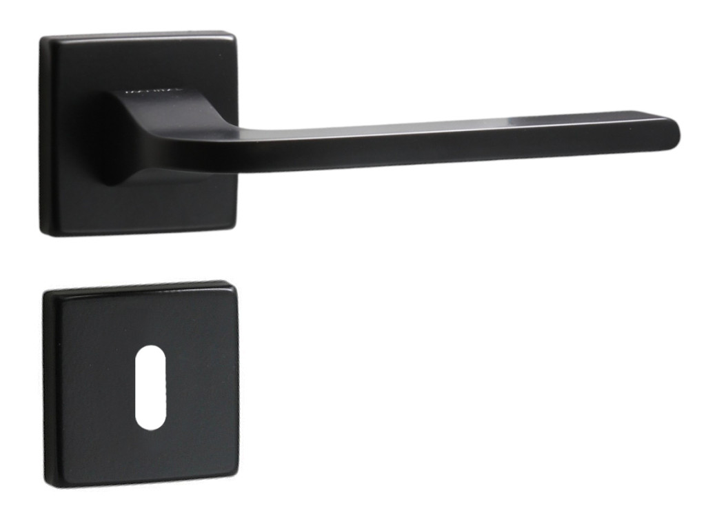 Négyszögletes, masszív kilincs. Méretei: kilincs hossz: 123 mm négyzet rozetta: 50x50 mm