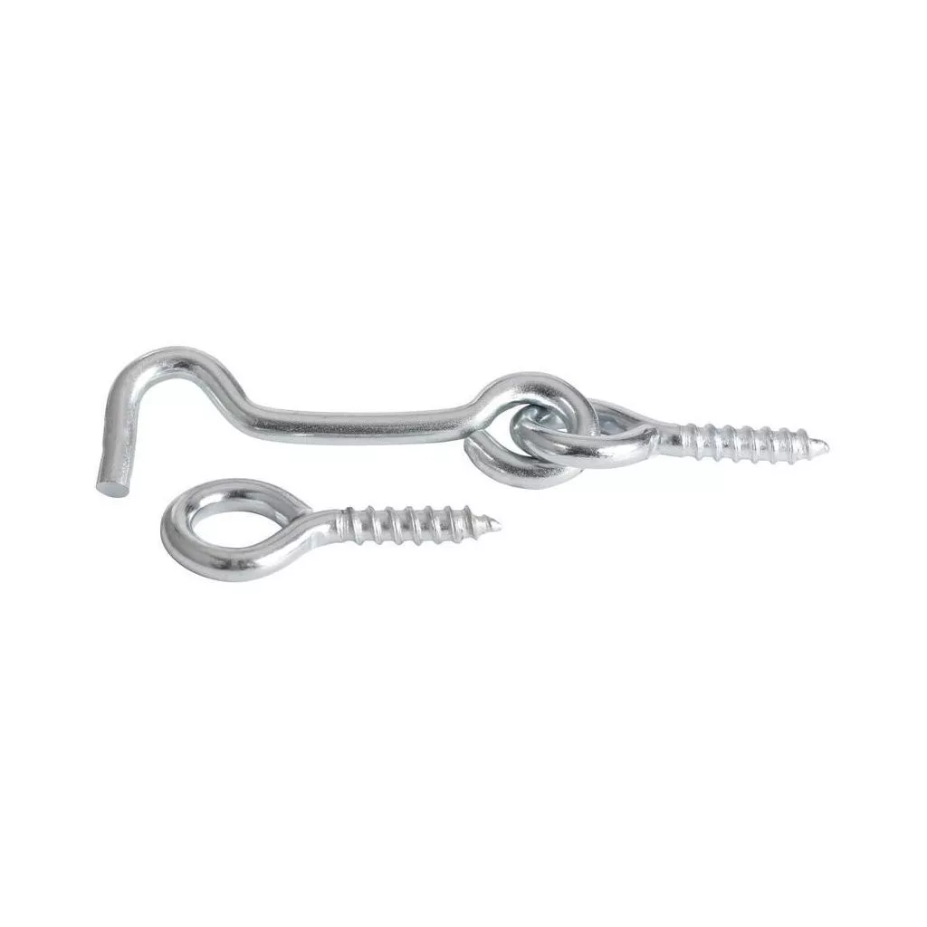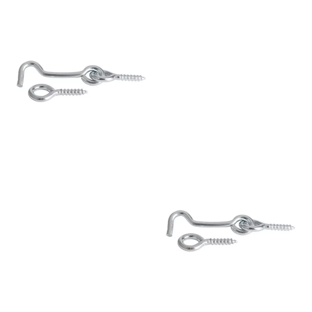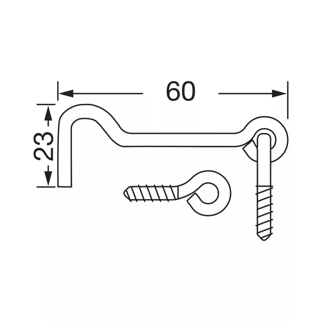 Biztonsági kampó, 60 mm hosszú, fűzőlyukkal, fába csavarozásra alkalmas. A csomag 2 db-ot tartalmaz.