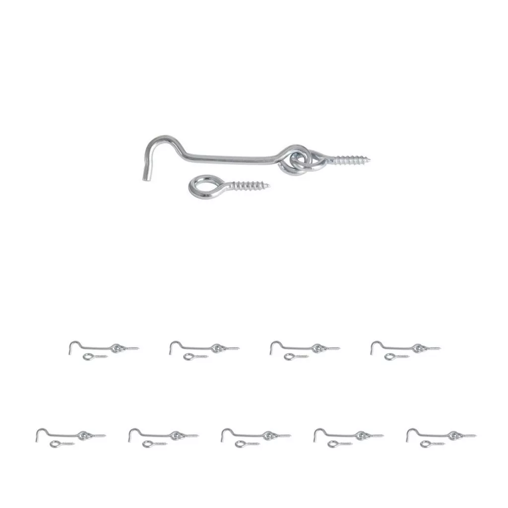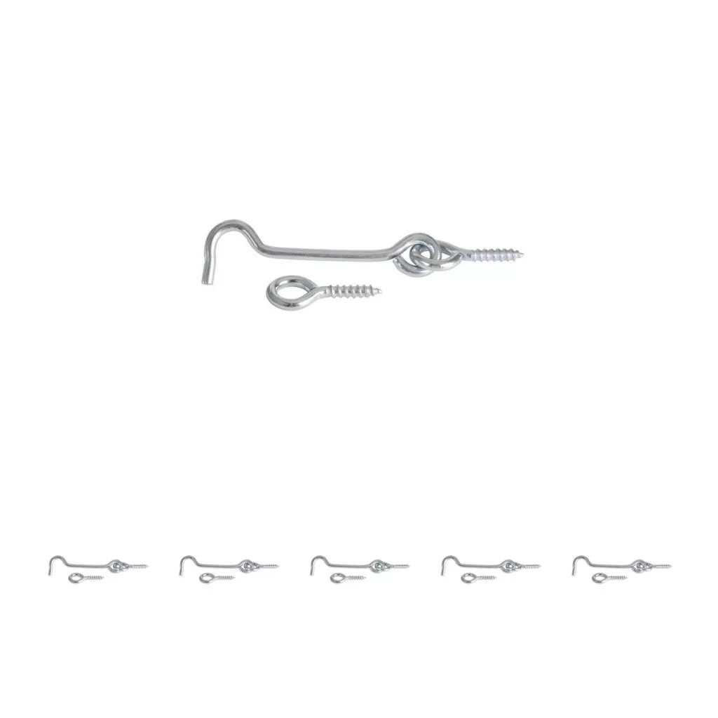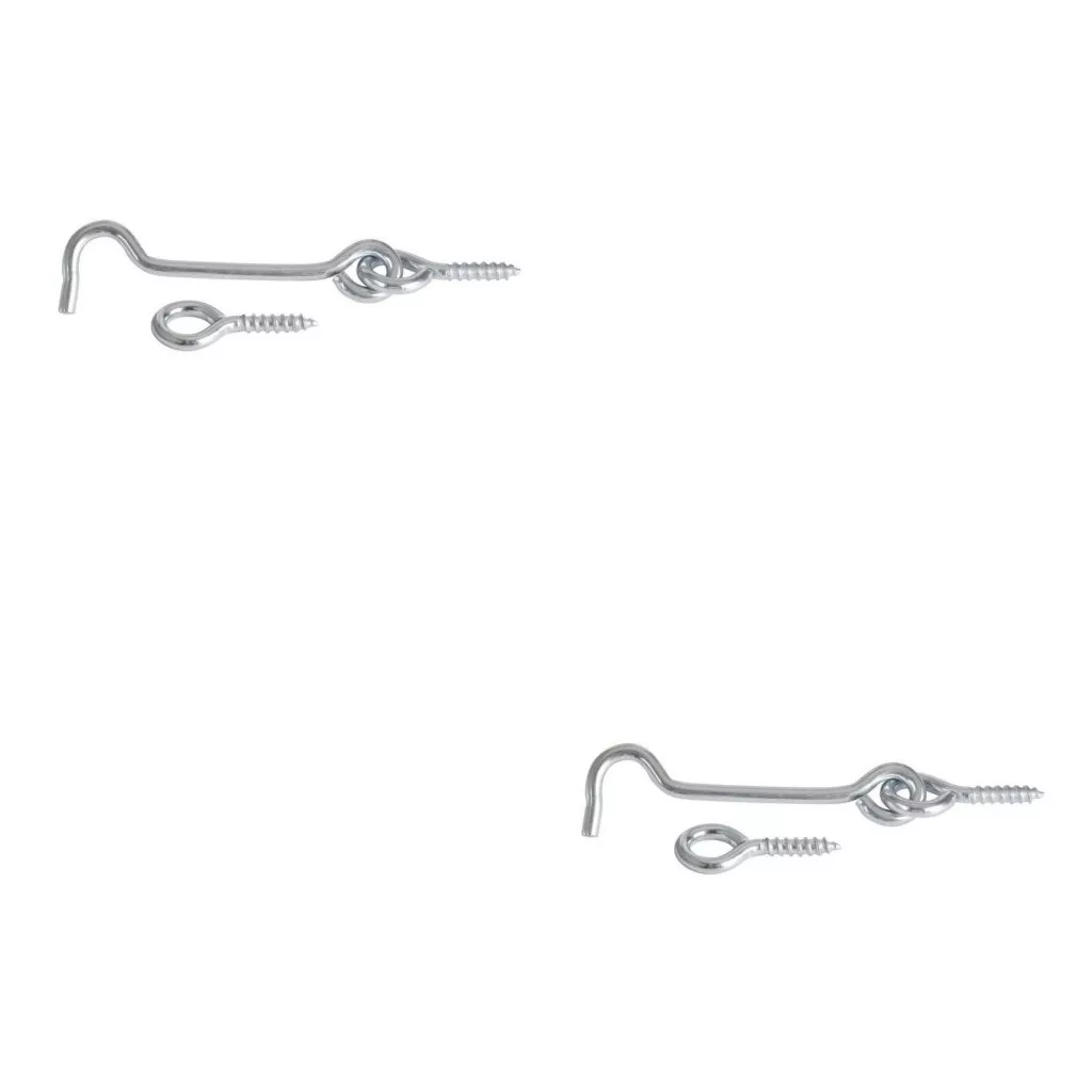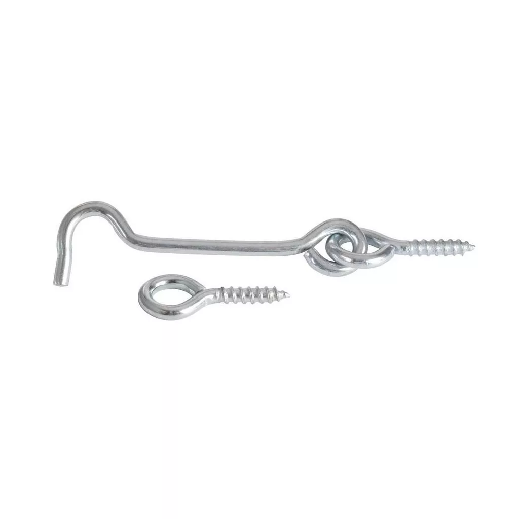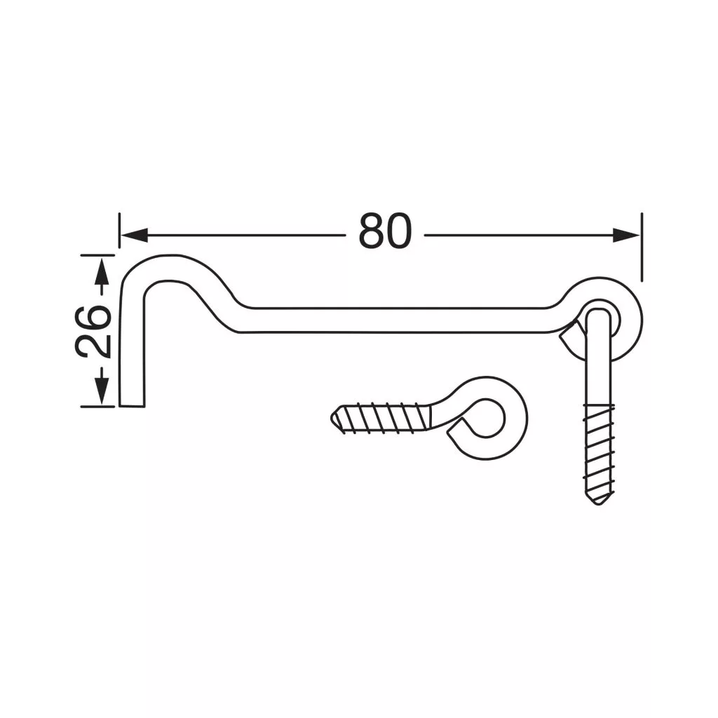 Biztonsági kampó, 80 mm hosszú, fűzőlyukkal, fába csavarozásra alkalmas. A csomag 2 db-ot tartalmaz.