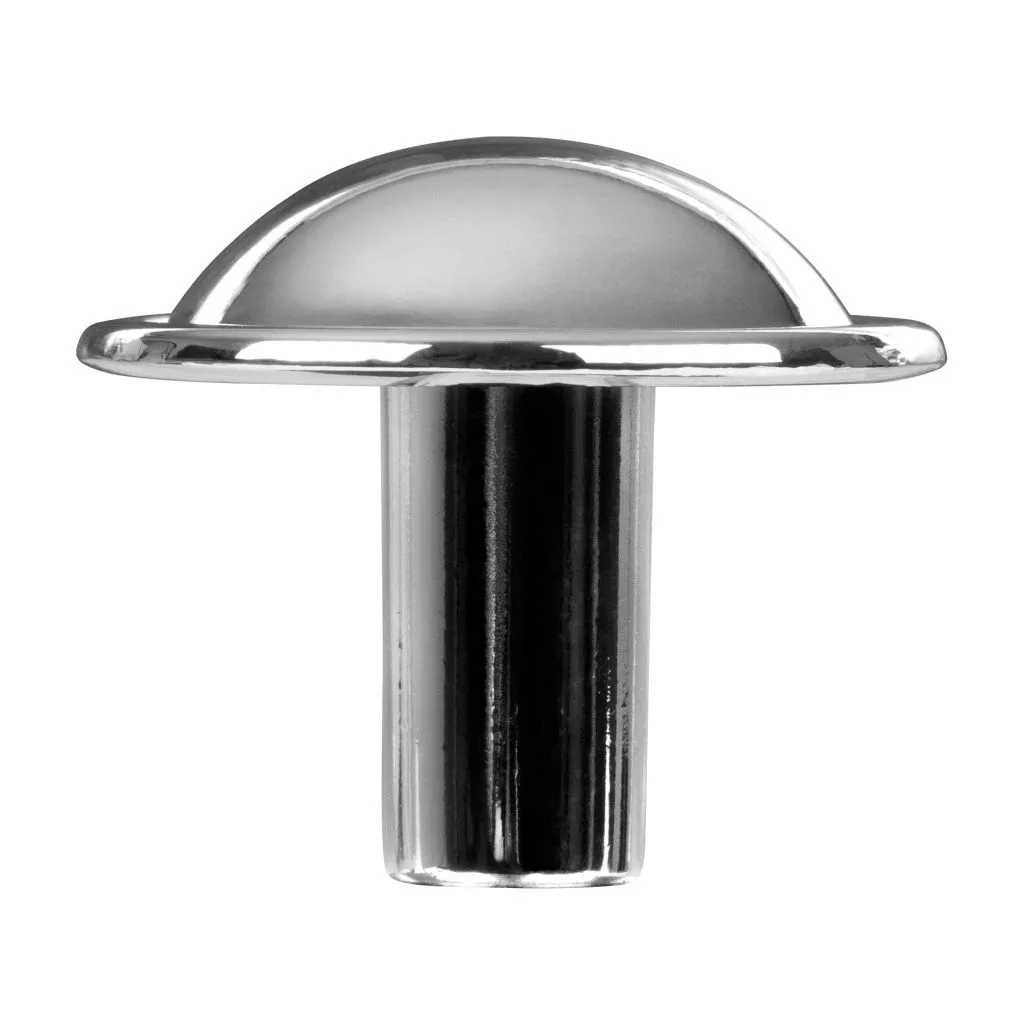 Krómozott Brino bútorgomb, 29 mm átmérőjű és 25 mm magas. Rögzítőcsavarral együtt.