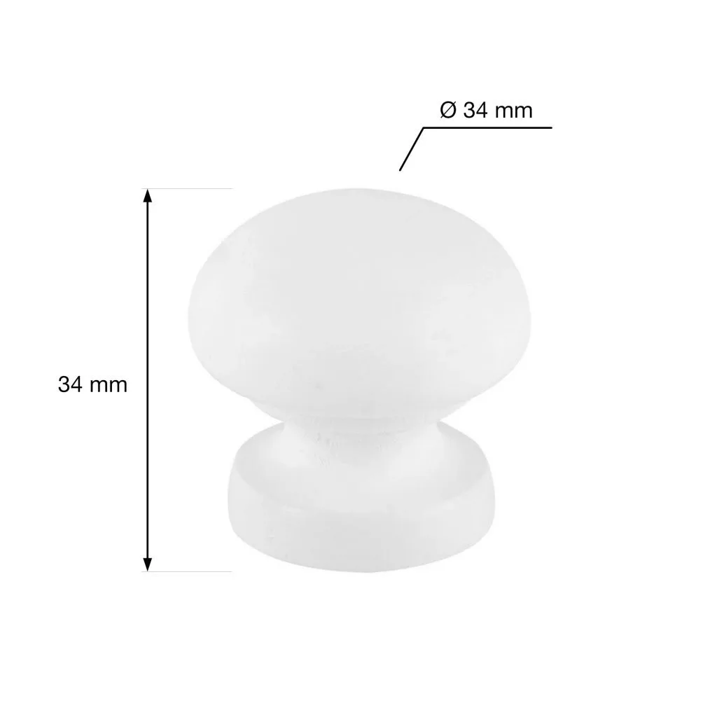 Klasszikus dizájnú Achen bútorgomb fehér színben, 34 mm átmérővel és 34 mm magassággal. A csomag tartalmaz egy rögzítőcsavart.