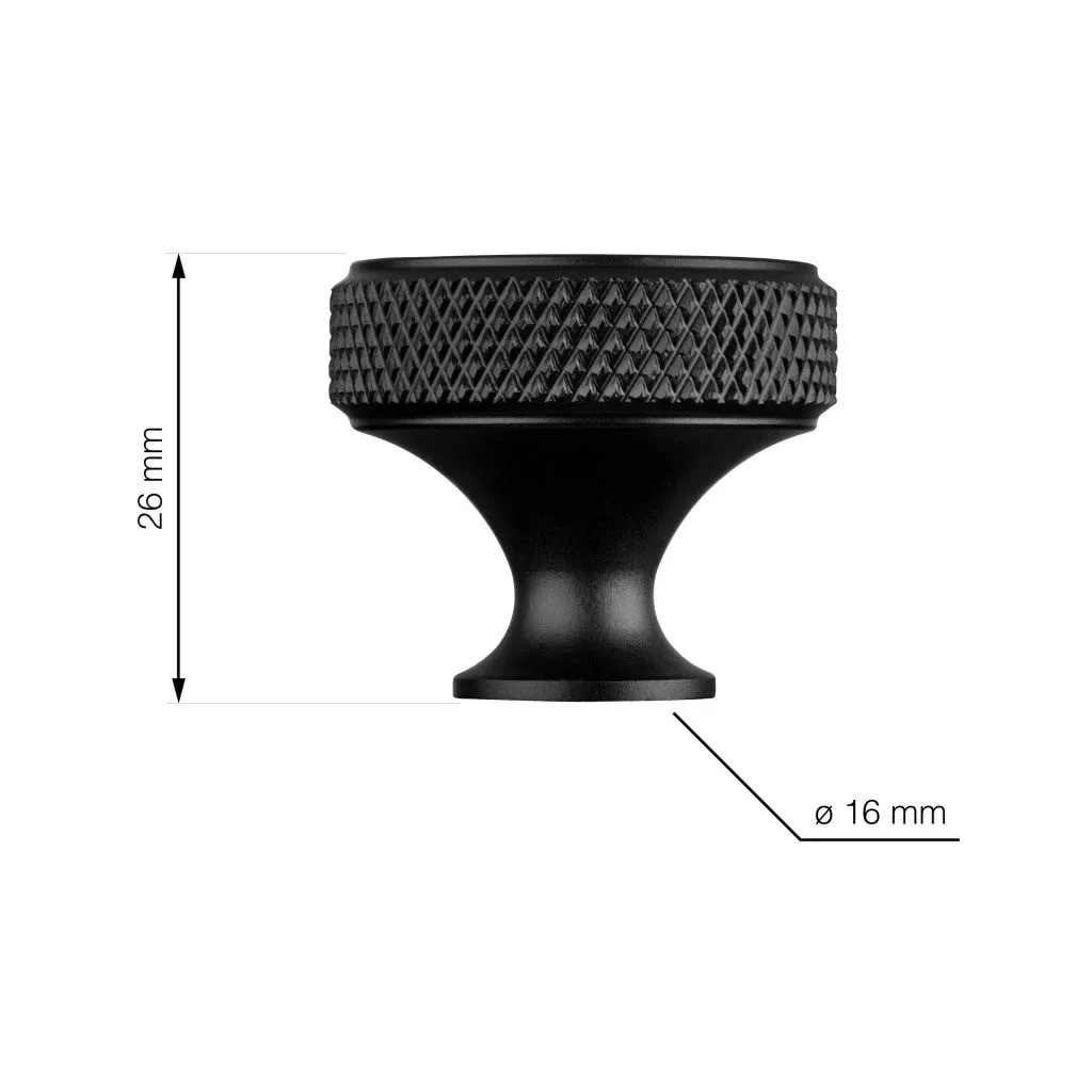 Dieren bútorgomb klasszikus dizájnban, fekete színben, 30 mm átmérővel és 26 mm magassággal. A csomag tartalmaz egy rögzítőcsavart.