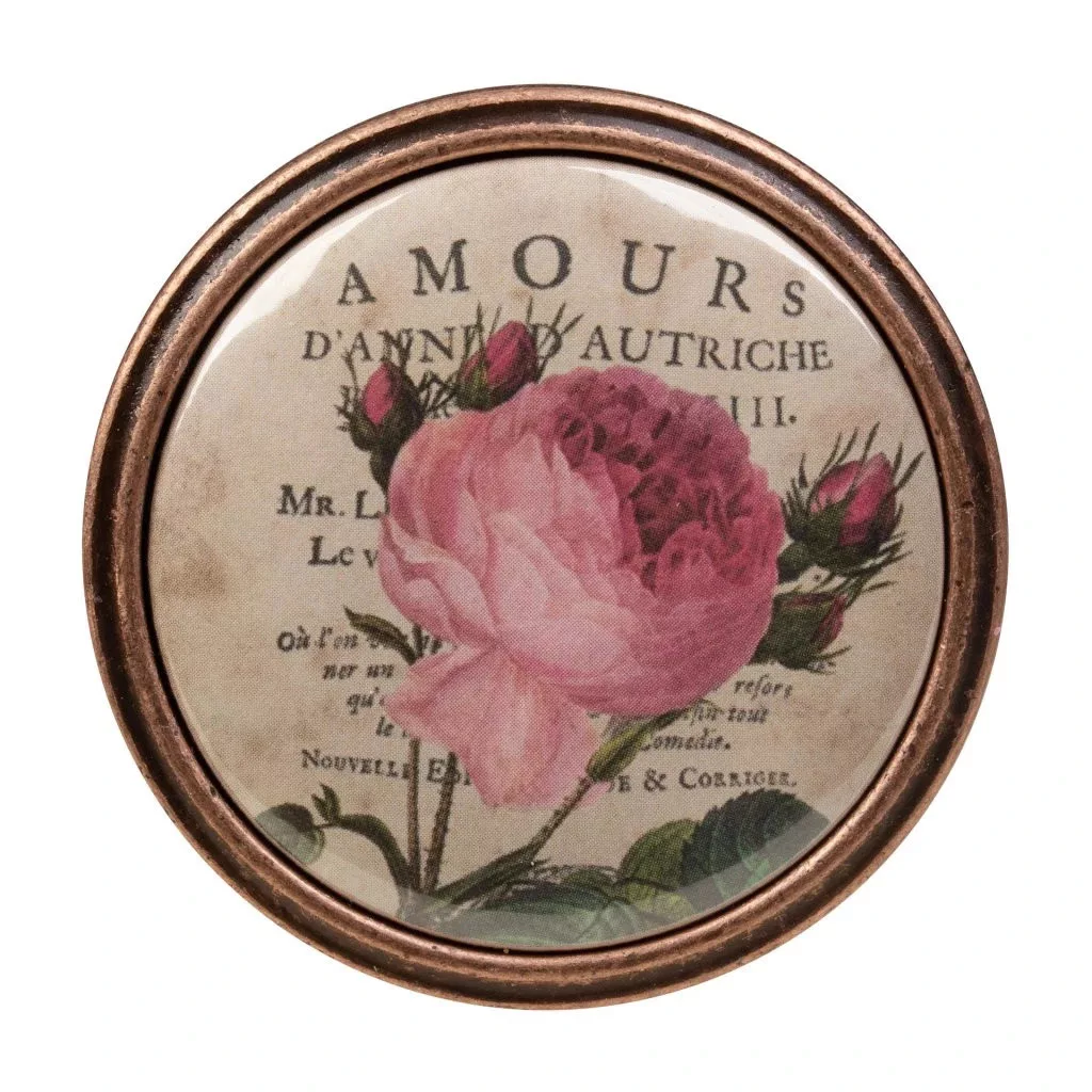 Rusztikus bútorgomb Rose II réz patinás dizájnnal, 37 mm átmérővel és 26 mm magassággal. A csomag tartalmaz egy rögzítőcsavart.