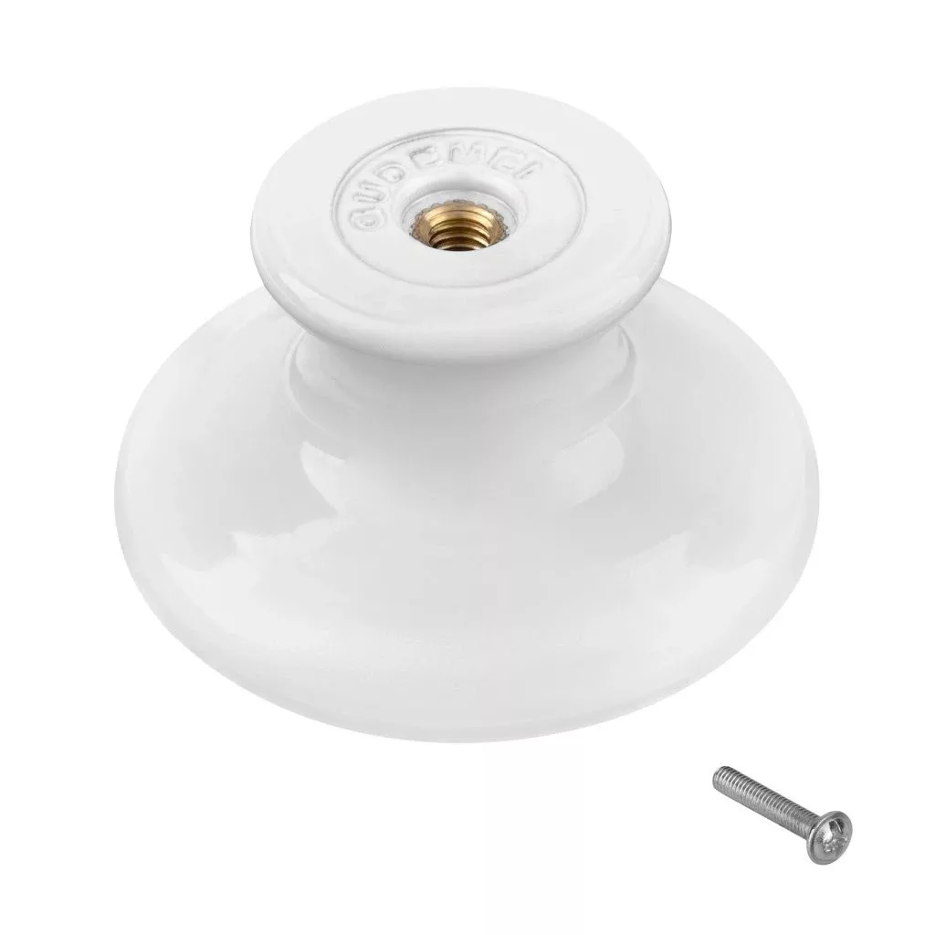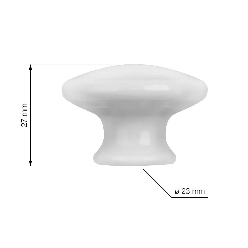 Seol bútorgomb fehér színben, 40 mm átmérőjű és 27 mm magas. A csomag tartalmaz egy rögzítőcsavart.