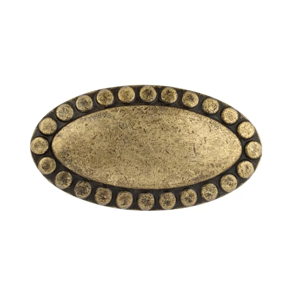 Tarent rusztikus bútorgomb antik sárgaréz kivitelben, 39 mm széles és 20 mm magas. Rögzítőcsavarral együtt.