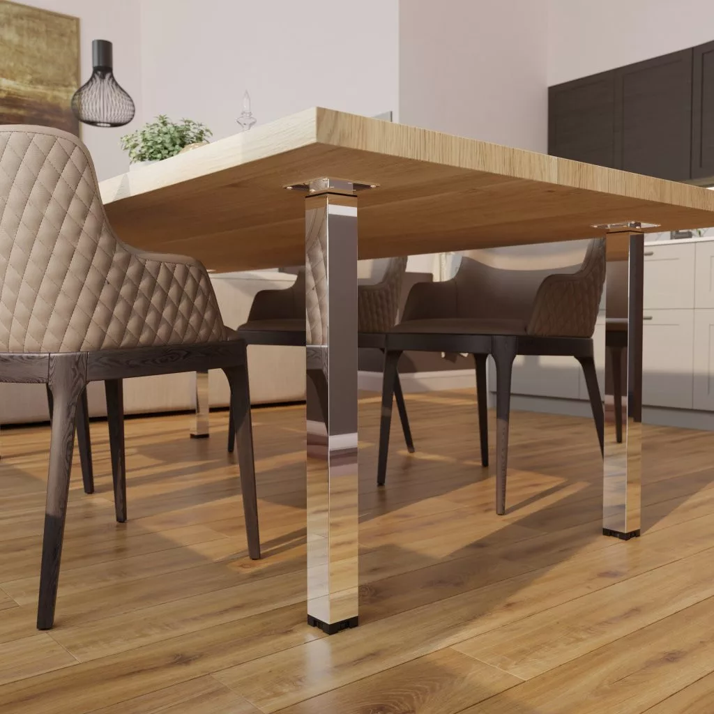 Magasságban állítható, négyzet alakú bútorláb króm felülettel, 60x60 mm méretben, 80 kg teherbírással. A bútorláb alapmagassága 700 mm, felfelé kihúzva akár 1100 mm-ig is állítható. Cikkünk segít a magasságban állítható bútorlábak kiválasztásában.