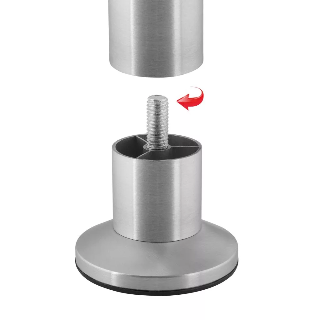 Elegáns, magasságban állítható bútorláb szálcsiszolt alumíniumból, 38 mm átmérővel (keskenyebb része 32 mm), 100-115 mm között állítható magassággal. Egyedülállóak a teherbírásukban, amely akár 250 kg is lehet. Cikkünk segít a magasságban állítható bútorlábak kiválasztásában.