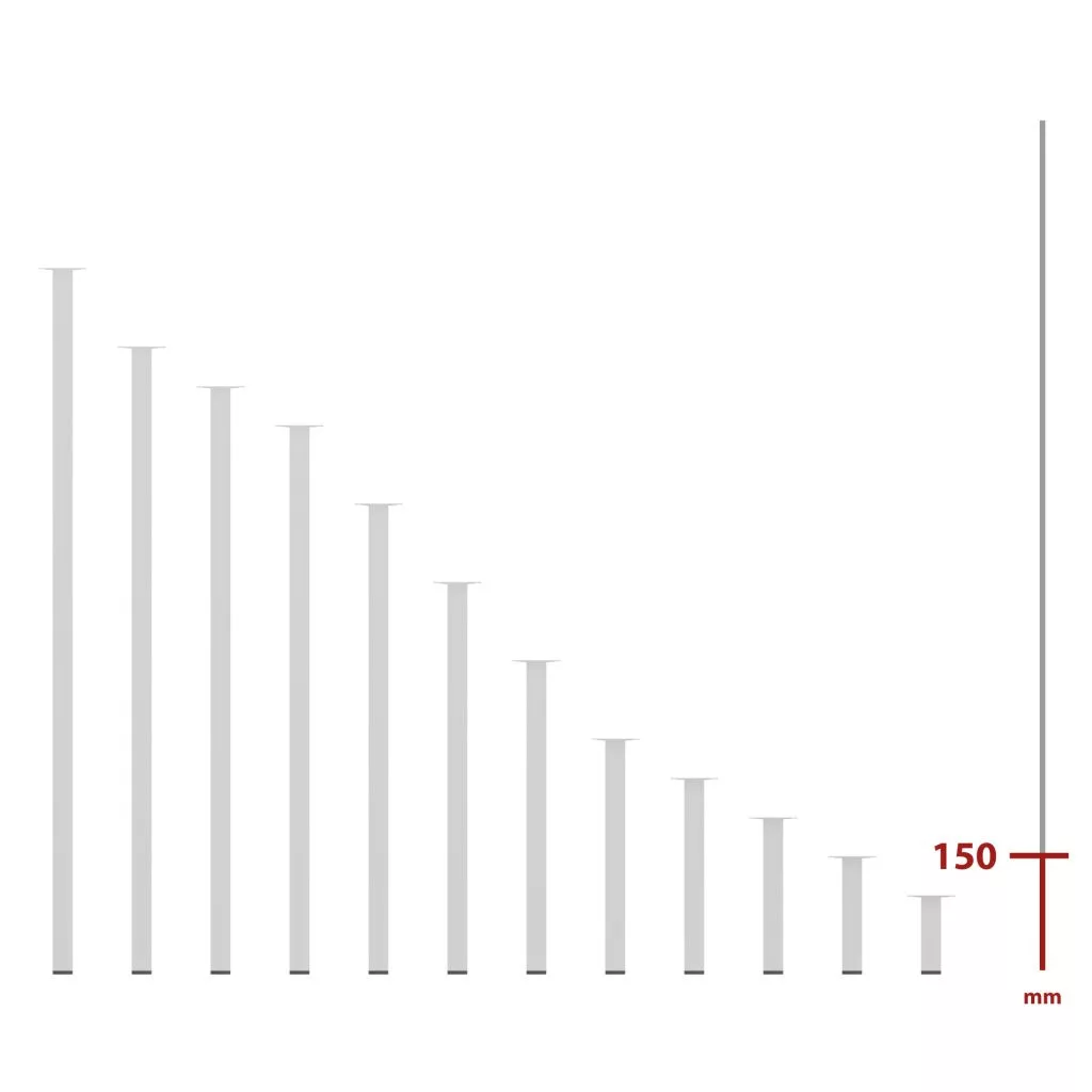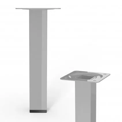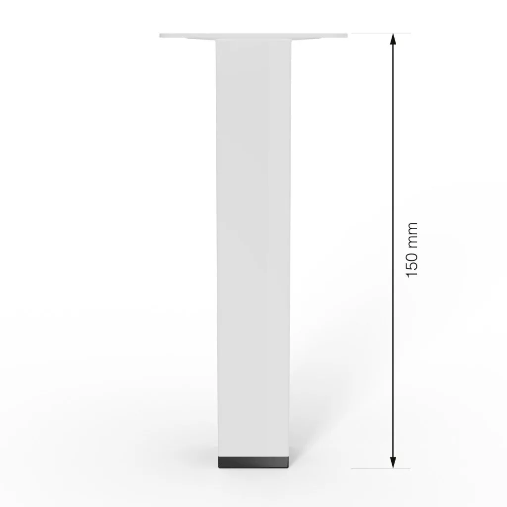 Négyzet alakú fém bútorláb fehér színben, 25x25 mm-es profillal, 150 mm magas, 60x60 mm-es lemezzel és alsó műanyag csúszótalppal.