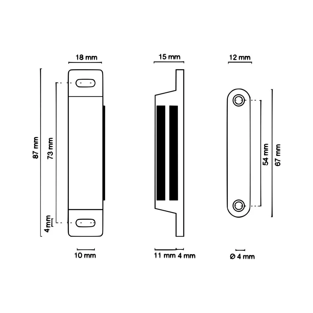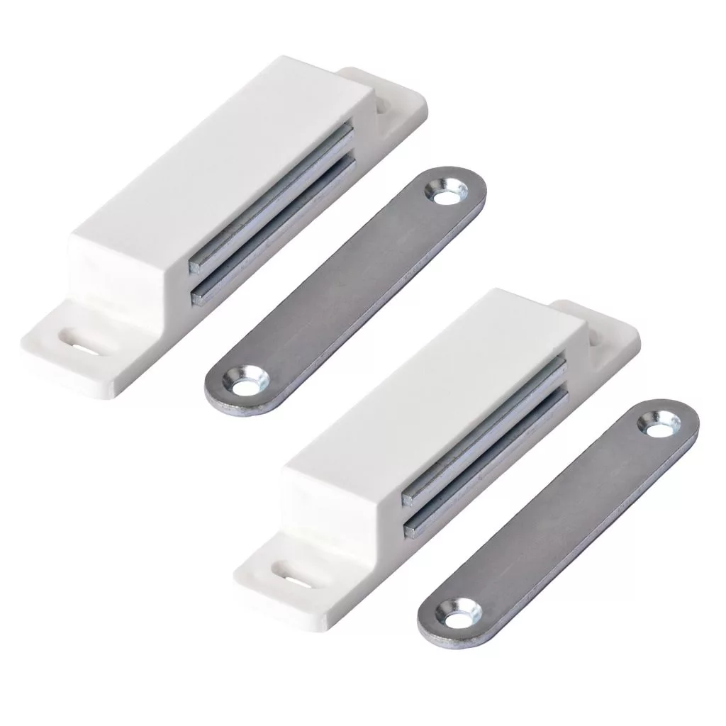 87 mm széles, fehér színű bútormágnes, 13,5 kg teherbírással. A csomag 2 darabot tartalmaz. A rögzítőcsavarok nem tartozékok.