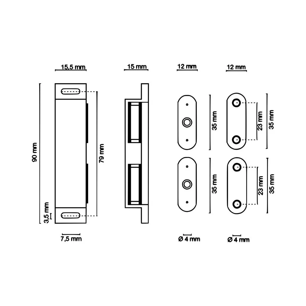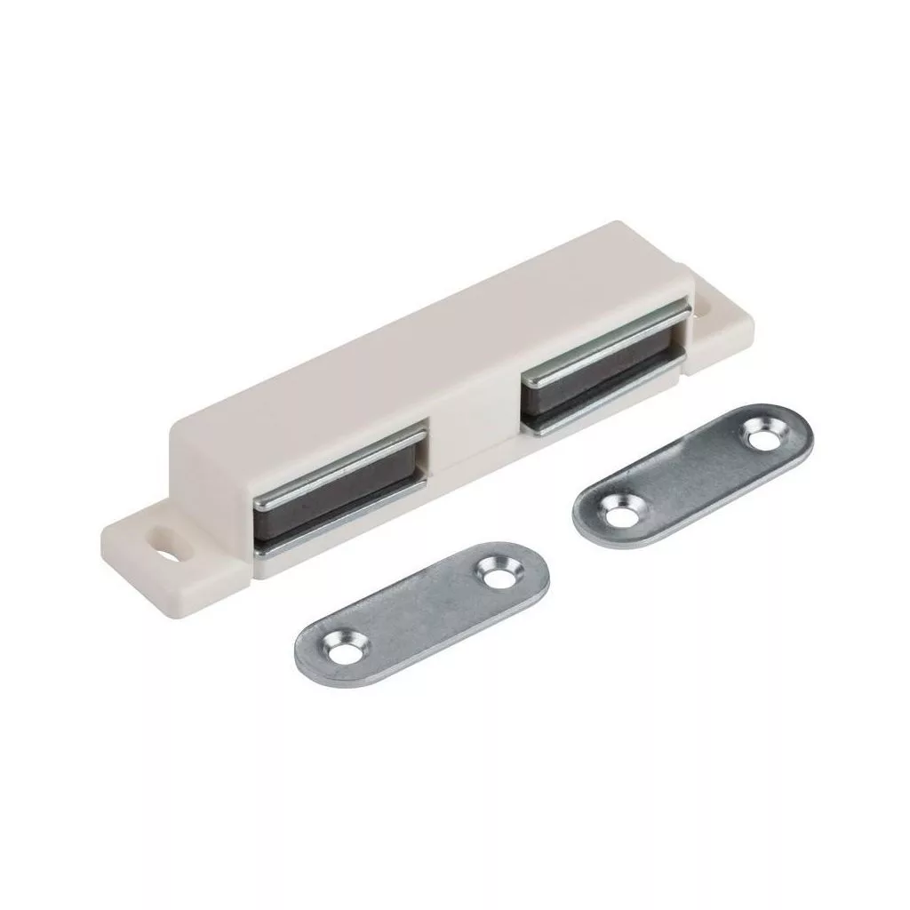 90 mm széles, fehér színű bútormágnes, 2x3 kg teherbírással. A csomag 2 db-ot tartalmaz.