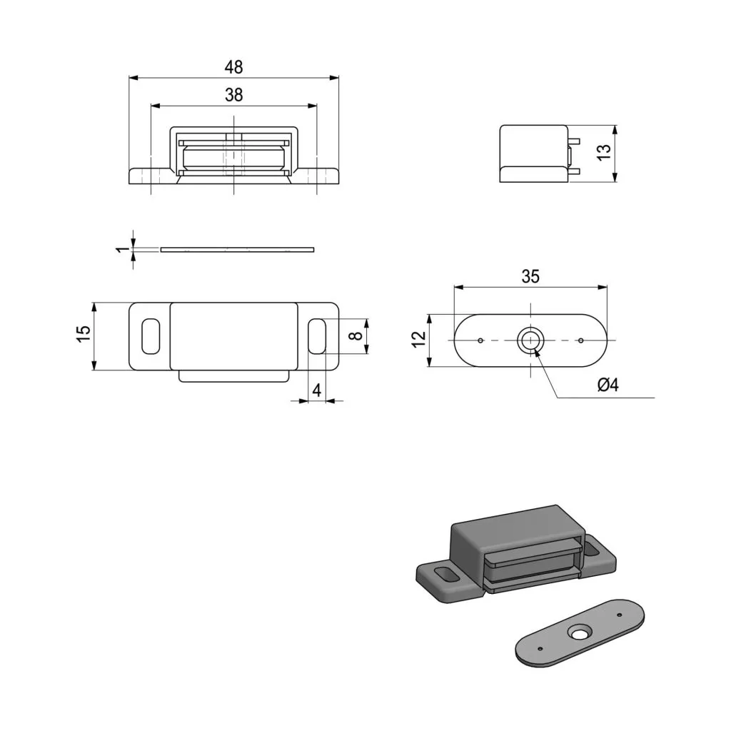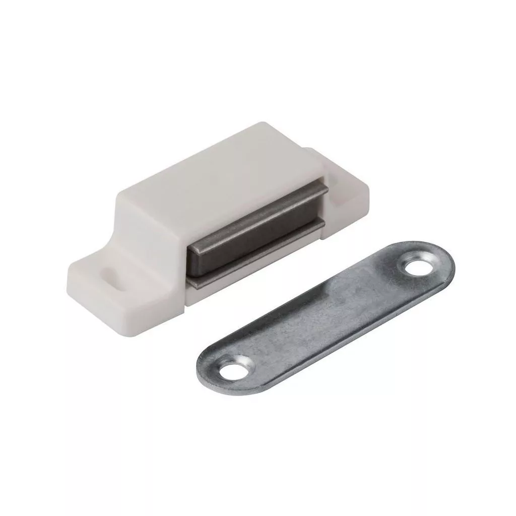 48 mm széles, fehér színű bútormágnes, 3-4 kg teherbírással. A csomag 2 db-ot tartalmaz.