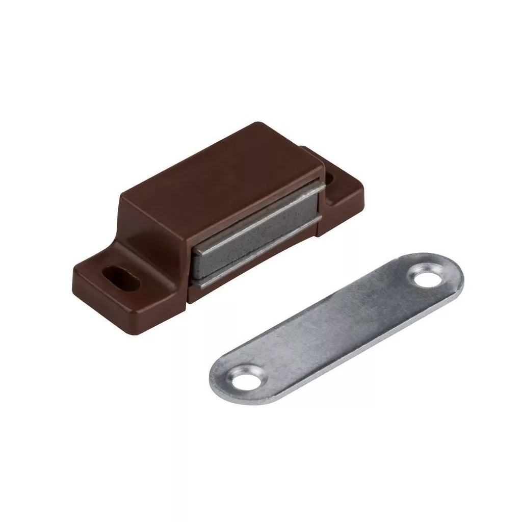 Bútormágnes teherbírás 3-4 kg két csavarlyukkal barna 2 db.