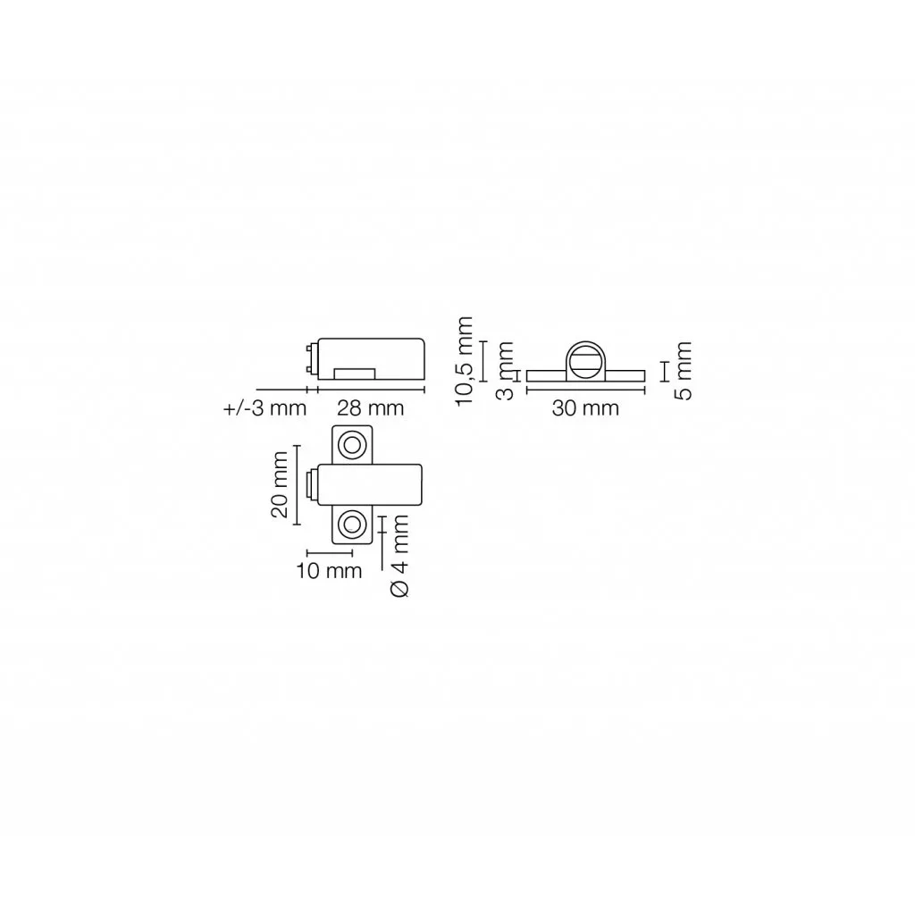 28 mm széles, szürke színű bútormágnes, 3,5 kg teherbírással.