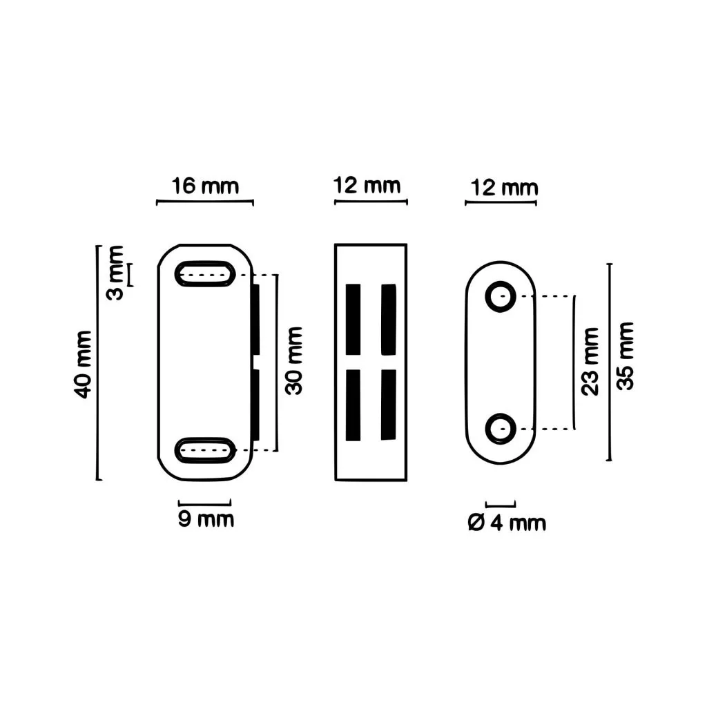 40 mm széles, fehér színű, 4 kg teherbírású bútormágnes. A csomag 2 db-ot tartalmaz.