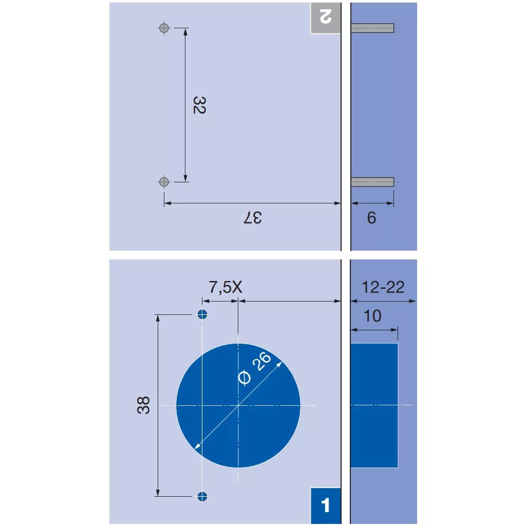 26 mm-es csésze átmérőjű bútorpánt félig átfedő ajtótípushoz. Útmutató a félig átfedő pánttípus helyes kiválasztásához.