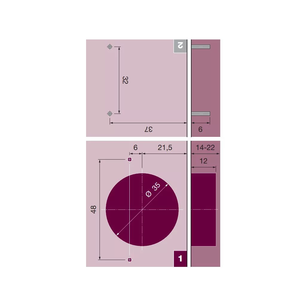 35 mm-es csészeátmérőjű és 45°-os nyitási szögű bútorpánt.