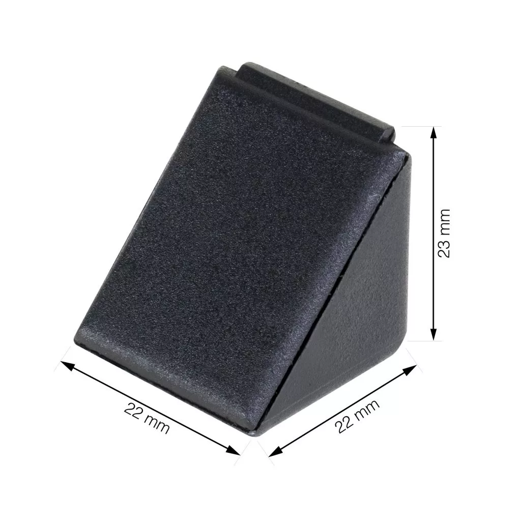 23 mm széles és 22 mm magas, fekete színű, műanyag összekötő szögidom kupakkal, a Black Edition sorozatból