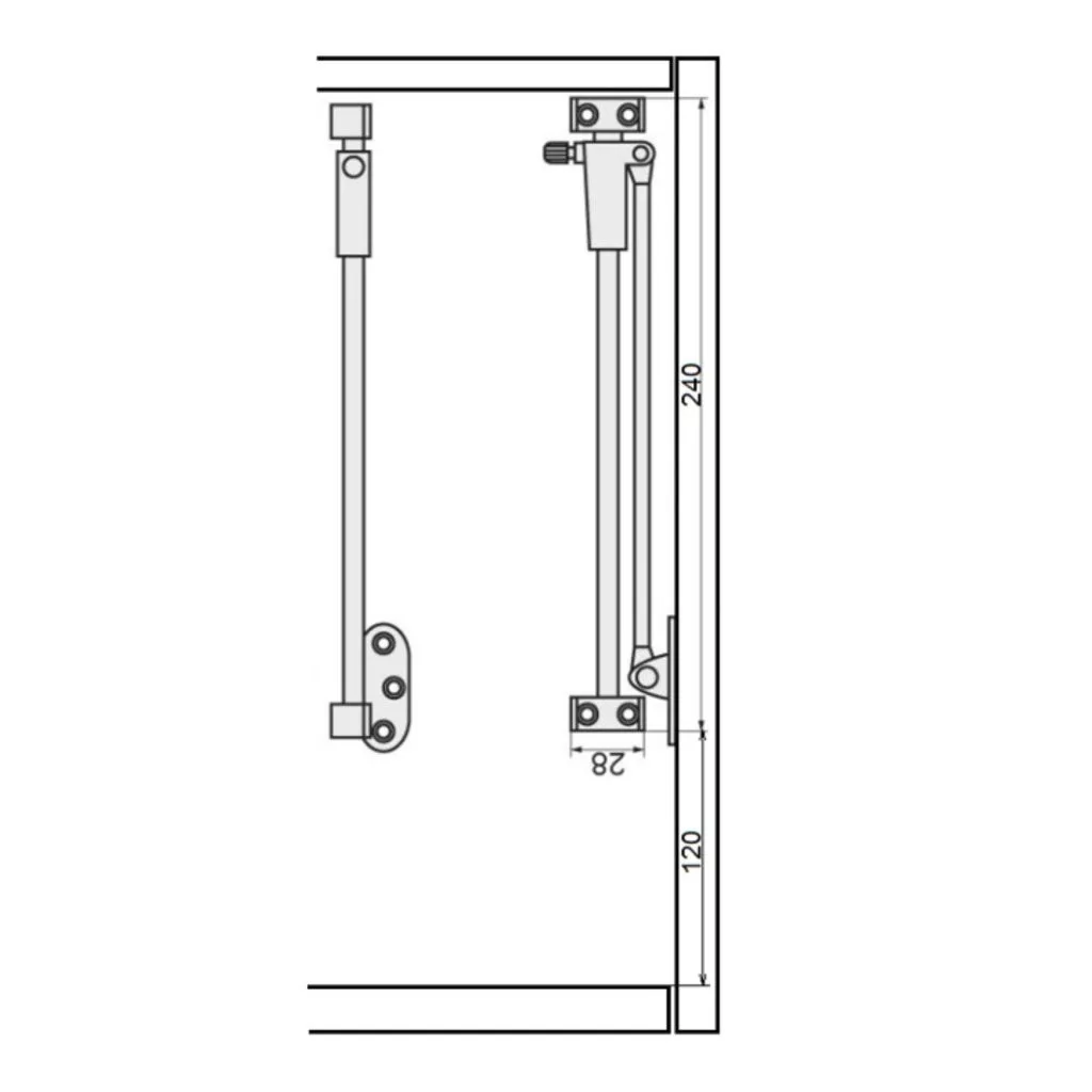 275 mm-es csuklós ajtófék a jobb oldalon.
