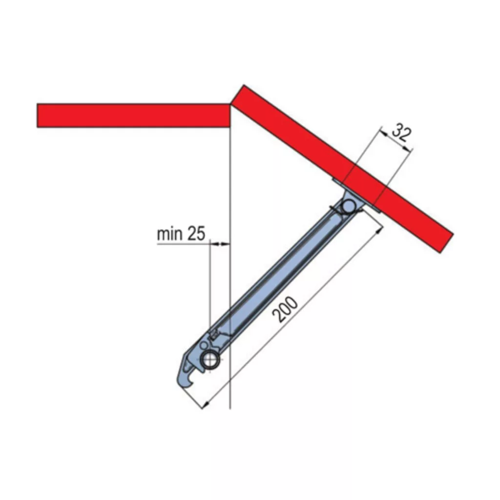 200 mm hosszú, jobb oldali csuklós ajtófék.